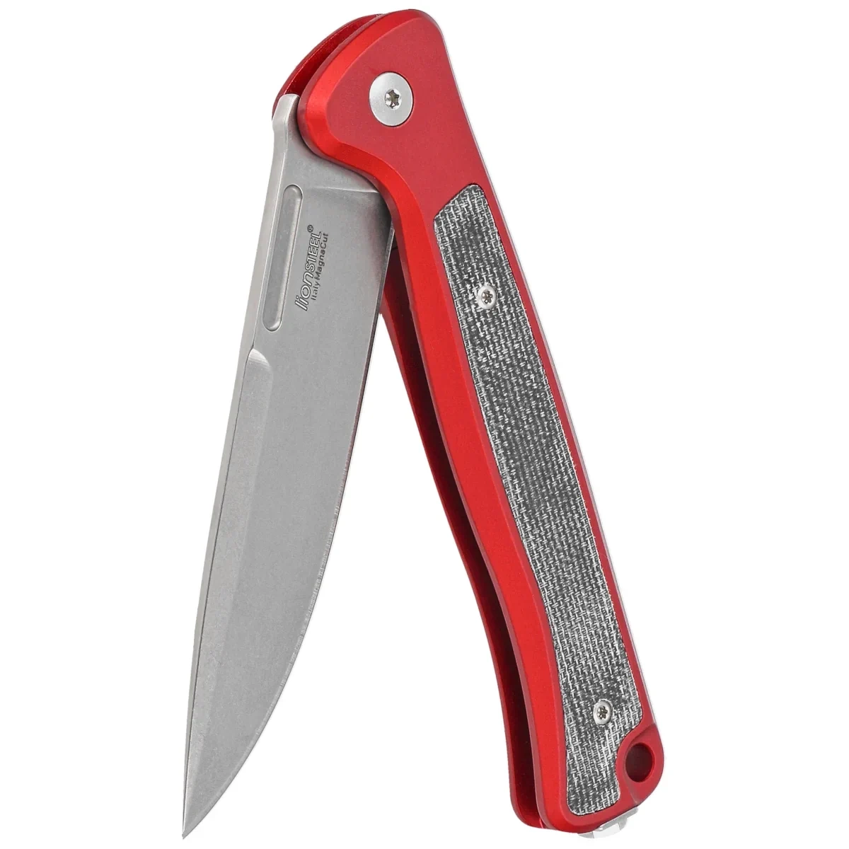 - Skinny Red Aluminium/Black Canvas Micarta, Stonewash folder from Italian manufactory LionSteel designed by Michele "Mollletta" Pensato with Solid technology and a MagnaCut steel blade. Winner of the Imported Knife of The Year 2024 award at the Blade Show