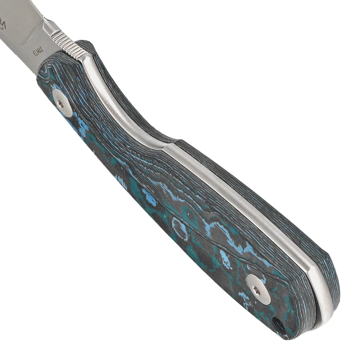 Elmax - considered the "best all-around knife steel" a modern alloy steel with a high content of 17.30% (Cr), carbon 1.70% (C), vanadium 3.00% (V), molybdenum 1.00% (Mo), silicon 0.80% (Si). Hardened in the range of 57-62 HRC. Produced by powder metallurgy method of mixing finely powdered materials, pressing to the desired shape, and then heating to sinter or bind the material. It is characterized by extreme edge holding, high wear and corrosion resistance, and dimensional stability. Manufactured at Böhler-Uddeholm steel mills in Austria.