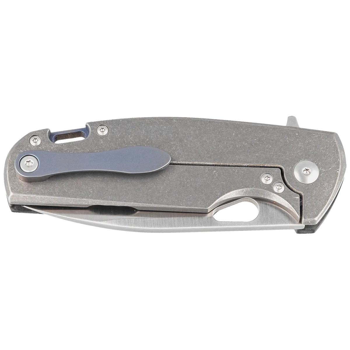 Blade - Drop Point type with clearly marked belly emphasizes satin finish. The small thickness of the 4mm blade, combined with a high, flat grind, gives extreme cutting properties while maintaining above-average strength. Ball bearing system aids in the smooth opening of the blade, which can be opened via a hole in the wedge or with a flipper flipper. The entire blade is locked with a proven frame lock with a steel inlay to prevent wiping of the lock face.