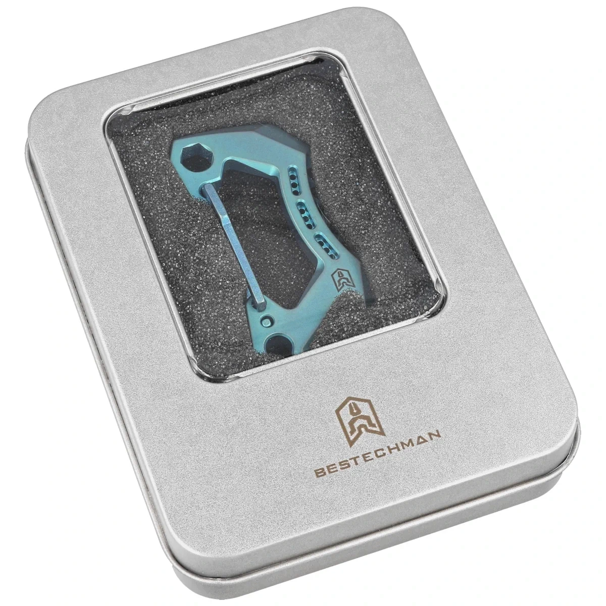 • Bestech Carabiner Blue Titanium made of solid non-magnetic titanium is a versatile carabiner. Includes a bottle opener and a hex key that can be used as a bit holder. A versatile everyday accessory!