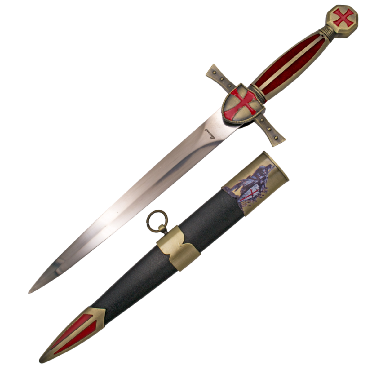 - Templar Dagger Bronze/Gold ABS, Satin Stainless Steel (S0299) - decorative Templar dagger with stainless steel Blade, striking Handle and decorated Sheath. An ideal addition to historical weapon collections and knightly displays.