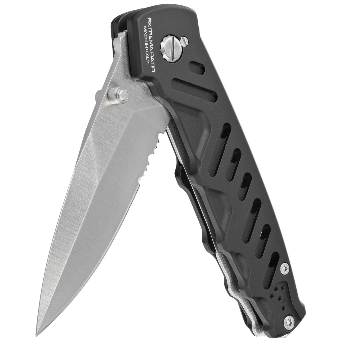 - Caimano Nero N.A. Black Aluminum, Satin, large tactical folding knife, Its name refers to the Caimani Neri del Piave unit. Designed by Extrema Ratio for G.O.I., Gruppo Operativo Incursori, aluminum Handle, proven Böhler N690 steel.