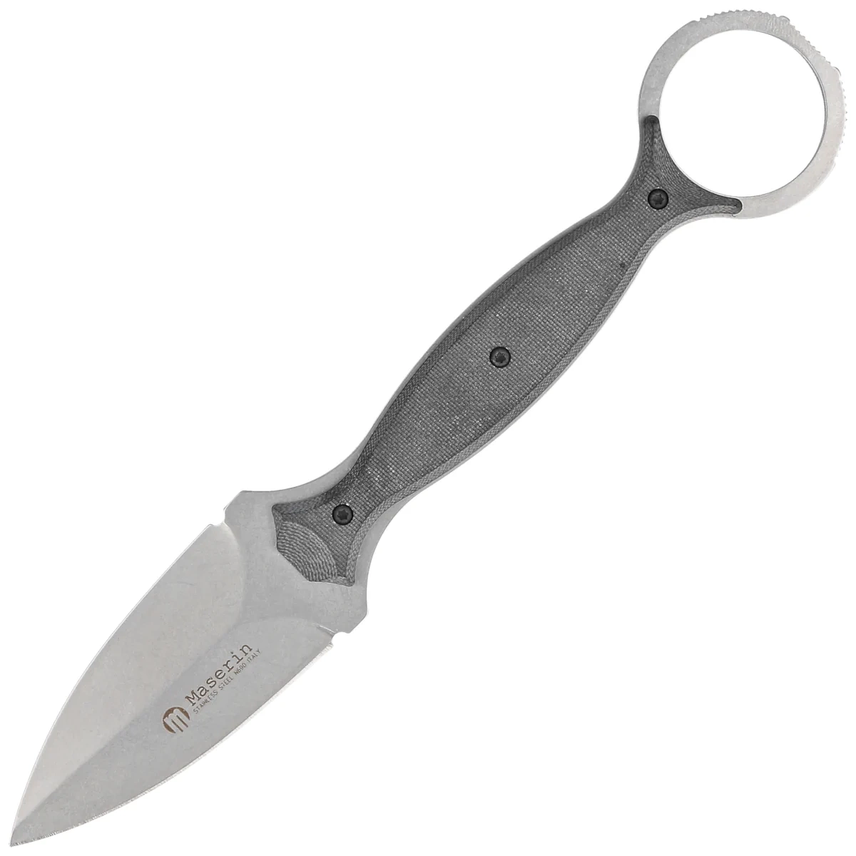 Neck Knife 922 Black G10, Stonewashed is a fixed blade knife designed by Russ Komer for Maserin. Monolithic construction made of Böhler N690 steel. Böhler N690 steel, known for its exceptional durability and corrosion resistance, is one of the most popular materials in the knife industry. The Black Stonewashed finish gives the blade a raw yet elegant look. Handle grips made of black G10 are not only robust but also provide a secure hold even under the toughest conditions. Thanks to its lightweight design, this knife is easy to carry and ideal for a variety of applications. The Kydex sheath with Tek-Lok clip allows it to be carried in various positions. This practical solution means that the knife is always at hand when it is most needed. This tool offers unparalleled quality and functionality. Its unique features and refined details make it an indispensable companion for anyone who values reliability and style.