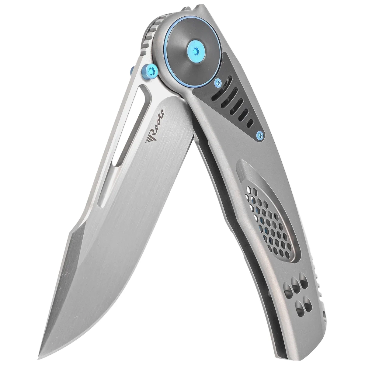Reate GTR Knife Bead Blasted Titanium/Zirconium Inlay, HW Ti-Blue Clip, Hand Satin M390