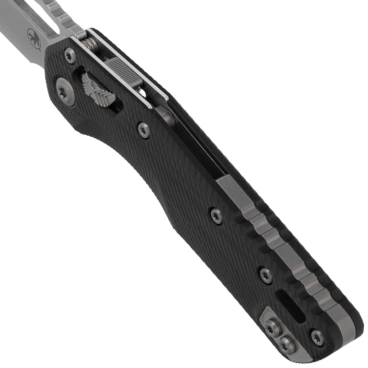 Handle - made of durable G10 composite, covered with milled lines (Fluted) for better grip. Wide locking slide with Microtech's characteristic stepped X structure. Both grips are bolted together with a solid aluminum backspacer. The double-sided (right / left) clip allows you to discreetly carry the knife in tip-up position. Above the clip a lanyard hole, a place for a safety or decorative cord.