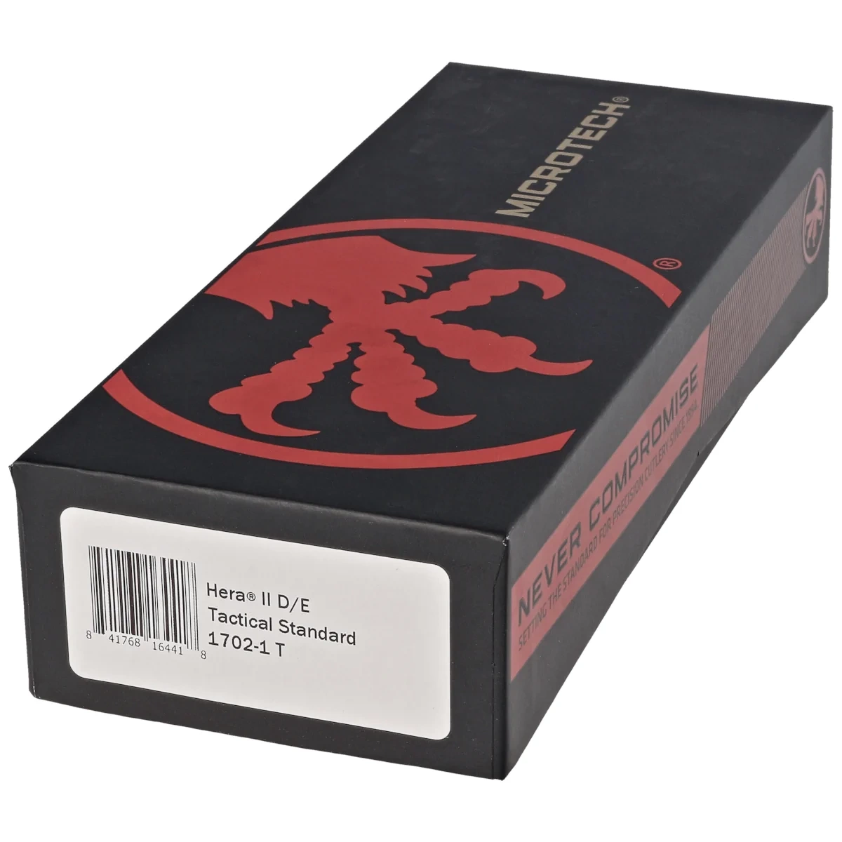 Hera II D/E Black Aluminum, Tactical one of the most versatile OTF (Out The Front) automatic knives. Inspired by the iconic Troodon, it bridges the gap between EDC models and fully tactical designs. The exceptionally durable D/A (Double Action) mechanism provides fast, powerful, and reliable blade deployment and retraction. The knife stands out with its excellent fit, finish, and overall build quality. A design by Anthony Marfione, renowned knifemaker and owner of Microtech Knives.