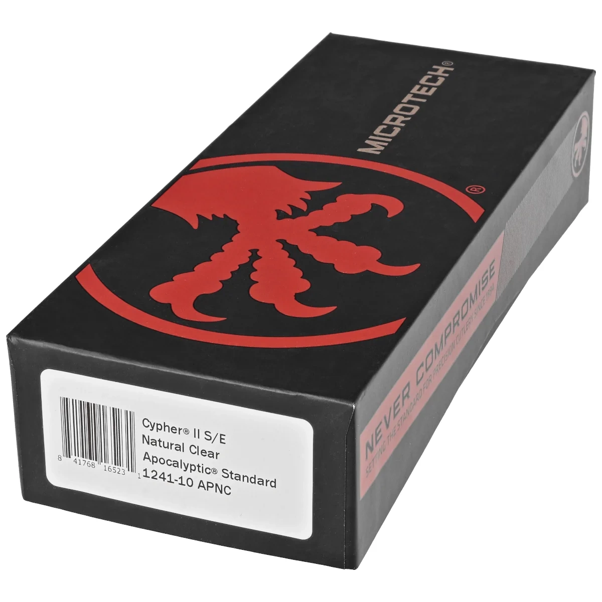 Cypher II S/E Natural Clear Aluminum, Apocalyptic is the second generation of the legendary OTF (Out The Front) knife, created in collaboration between Anthony Marfione and Deryk Monroe. Representing the pinnacle of advanced technology, the Cypher has undergone a comprehensive modernization. The innovative dual mechanism driving the blade ensures smoother operation than ever seen before in an OTF knife.