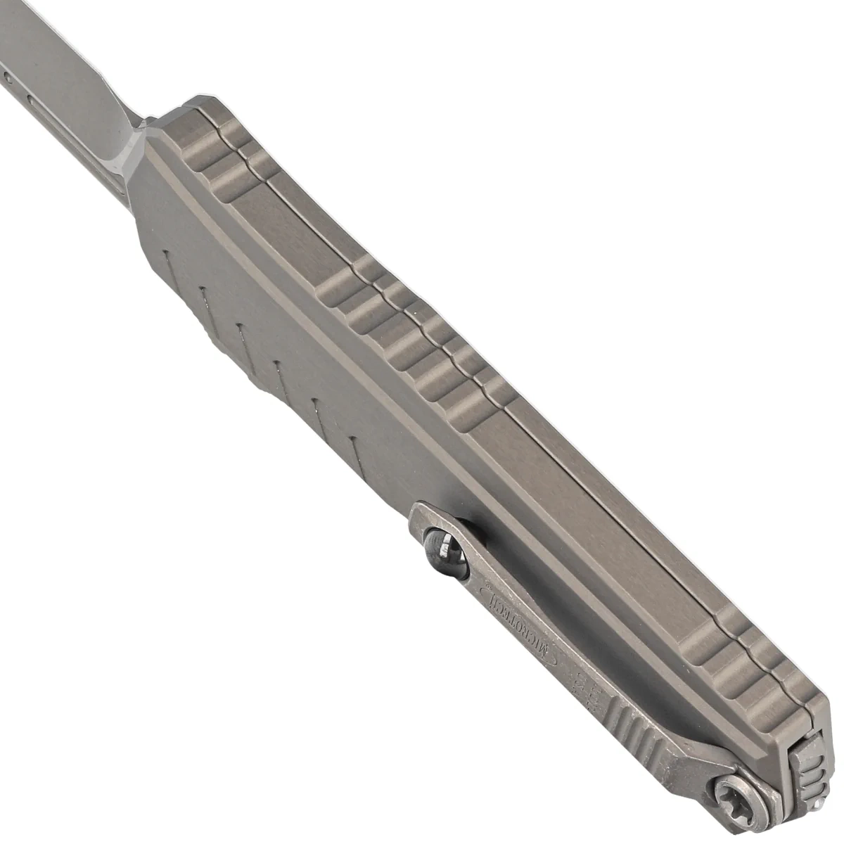 Microtech Cypher II S/E OTF Knife Natural Clear Aluminum, Apocalyptic M390MK by Deryk Munroe and Tony Marfione (1241-10APNC)