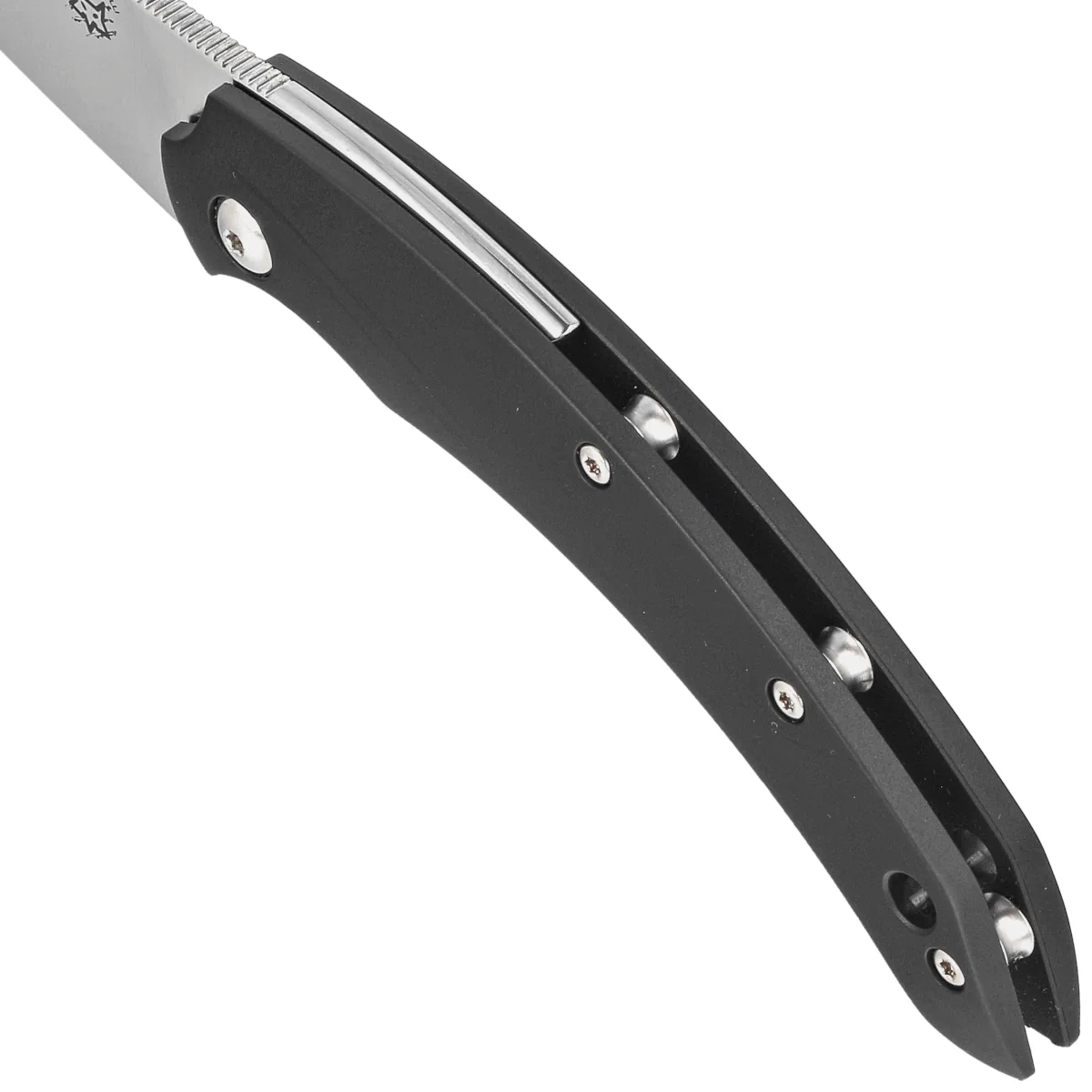 Slim Dragontac ''Piemontes'' Black FRN, Satin is a friction folder designed by Bastien Coves of Bastinelli Creations. This remarkable tool combines simplicity of design with exceptional functionality and proven materials. The blade is made of the popular Böhler N690Co steel. Handle made of FRN (Fiberglass Reinforced Nylon), a lightweight and extremely durable composite. The Slim Dragontac "Piemontes "is not only a tool, but also an expression of artisanal precision. Every detail, every finish is carefully crafted by master craftsmen, which guarantees not only excellent quality, but also the uniqueness of each piece. Friction folder does not have a lock as such, so it is allowed in all countries where carrying locking knives is prohibited. If you are looking for an elegant, functional knife for your collection, the Slim Dragontac ''Piemontes'' is an excellent choice. Its unique design, high quality workmanship and functionality will make it an indispensable part of your equipment. It is a combination of beauty and functionality that any knife lover is sure to appreciate.