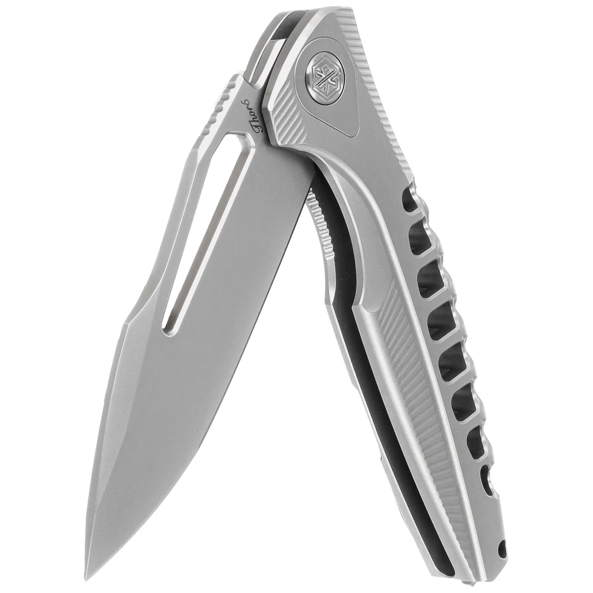 - Thor 5 Gray Titanium, Satin EDC folding knife from Rike Knife. A showcase of engineering capabilities, monolithic titanium Handle construction, quick opening with flipper, excellent Böhler M390 steel. An excellent and reliable everyday companion!