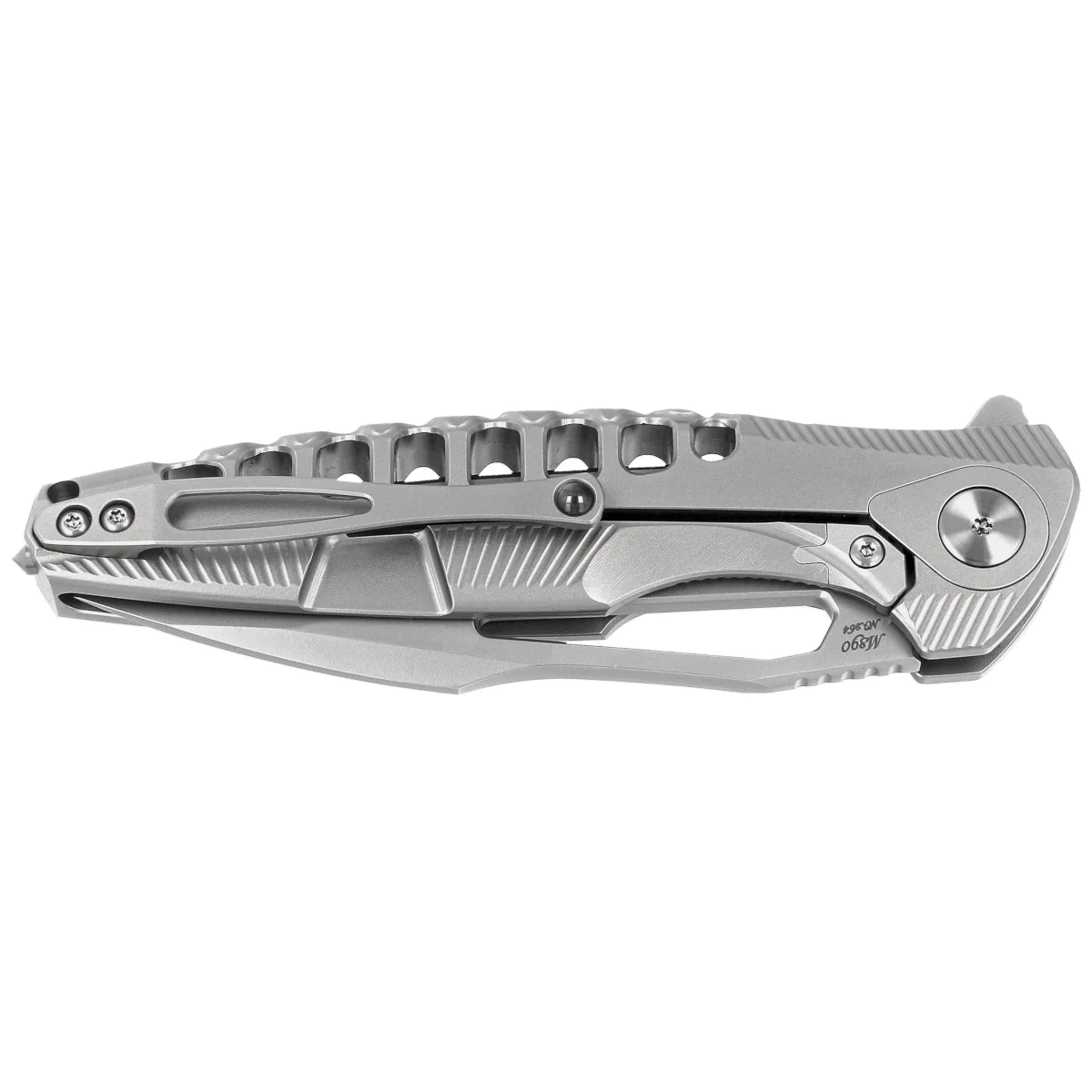 Thor 5 Gray Titanium, Satin, an exceptional EDC folding knife, a show off of Rike Knives engineers in design, combines excellent functionality with unique style. Blade is made of Böhler M390 steel, considered one of the best steels for knives. Theflipper is a quick flipper that allows you to open the knife instantly with one hand. This is especially useful in situations where every second counts. Handle is something that draws the most attention in this knife. The titanium monolithic housing is milled from a single piece of titanium. This provides unbelievable strength and rigidity of construction. The Rike Thor 5 is not just a tool - it is an expression of personal style and passion. Its compact size makes it easily cope with any task, and the quality of workmanship and unique design attract attention. Do not hesitate - this knife is an excellent choice for those who appreciate quality, functionality and sophisticated design!