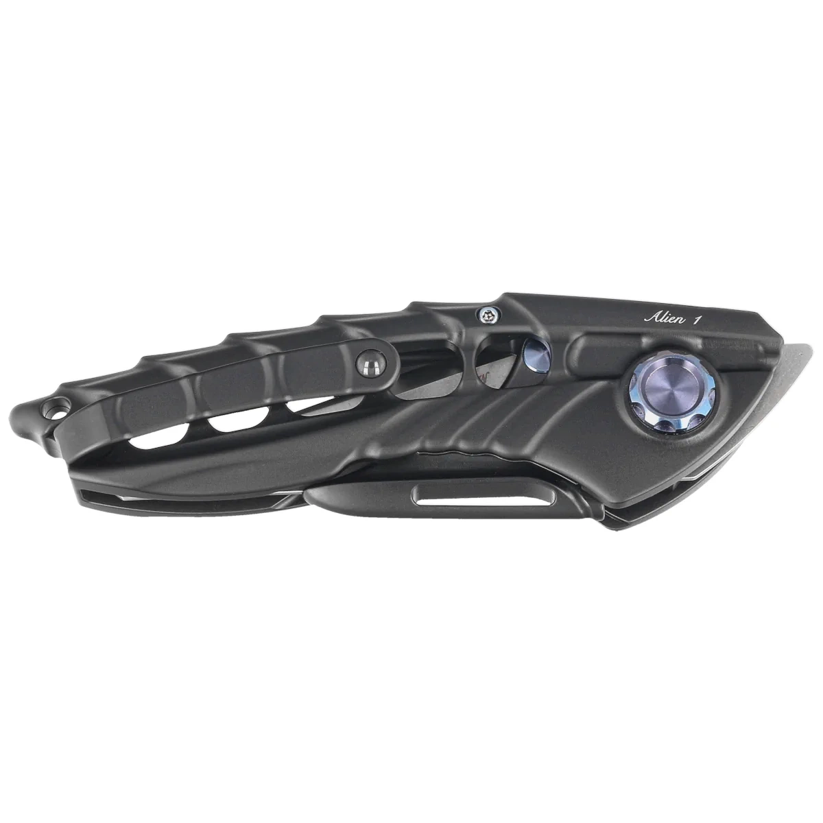 - Alien1 Black DLC Titanium, Satin, EDC folding knife from Rike Knife. A showcase of engineering capabilities, monolithic titanium handle construction, quick opening with front flipper, Blade made of Böhler M390 steel, A masterpiece of the art of utility!