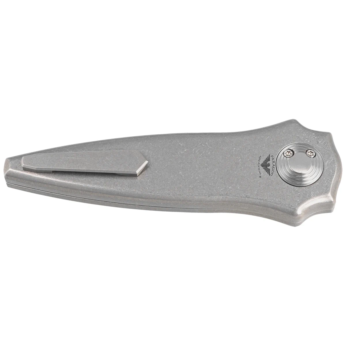 Handle - grips made of solid titanium 6AL4V, a very light and durable material. Bolted together with a Clamshell locking mechanism. Thanks to this design, the knife is very light, while maintaining high strength. The right-handed, single-position titanium deep-carry clip allows you to carry the knife discreetly in your pocket in tip-up (blade up) position. Grips with a smooth surface characteristic of the Smooth series. Double finger guard double-sided hilt protects your hand from slipping on the blade.