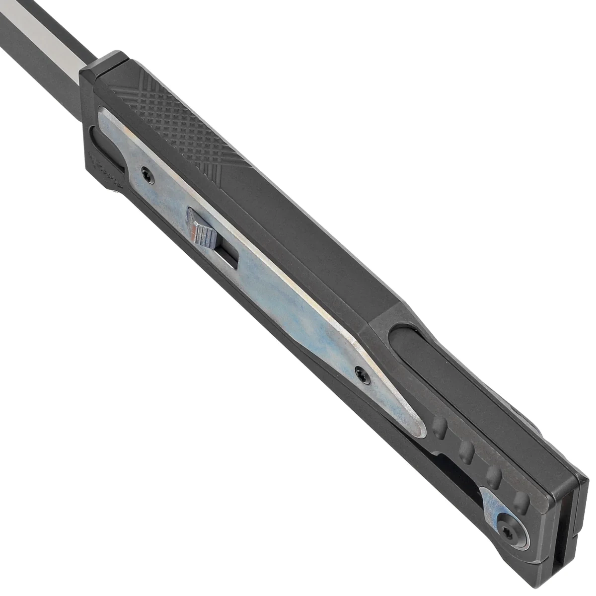 EXO 2.0 OTF Gravity Drop Point Black PVD Titanium, Black PVD open intuitive, the largest folding knife in the EXO series produced by the legendary Reate Knives manufactory, a display of engineering in design. Gravity OTF (Out The Front) Blade extends from the front due to the force of gravity. Modeled on the design of the Luftwaffe gravity air knife, commonly known as the knife of German paratroopers. Intuitive blade ejection / retraction with one hand (under the influence of gravity) and the best materials, perfectly combined with the unmatched quality of the Reate brand !