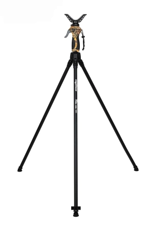 The wide, V-shaped yoke of the third arm is lined with soft rubber, providing secure support for any type of firearm, regardless of the stock dimensions. It also protects the firearm from scratches, which is particularly important for wooden stocks. Additionally, the head of the tripod is equipped with a 1/4" thread, allowing the attachment of a spotting scope or camera, making it ideal for wildlife observation or outdoor photography.
