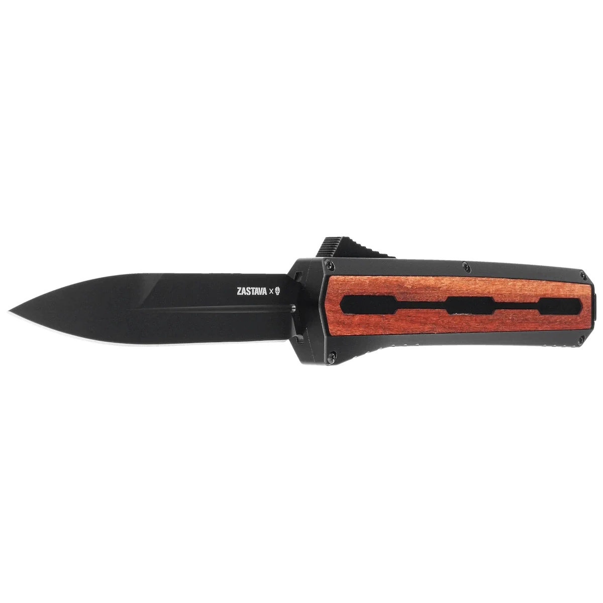 - A7 Zastava S/P Black Aluminum/Red Wood, Black tactical OTF automatic knife from Tekto made in cooperation with Zastava Arms. Precision contoured aluminum and wood handle, high quality S35VN steel blade, compact and lightweight!