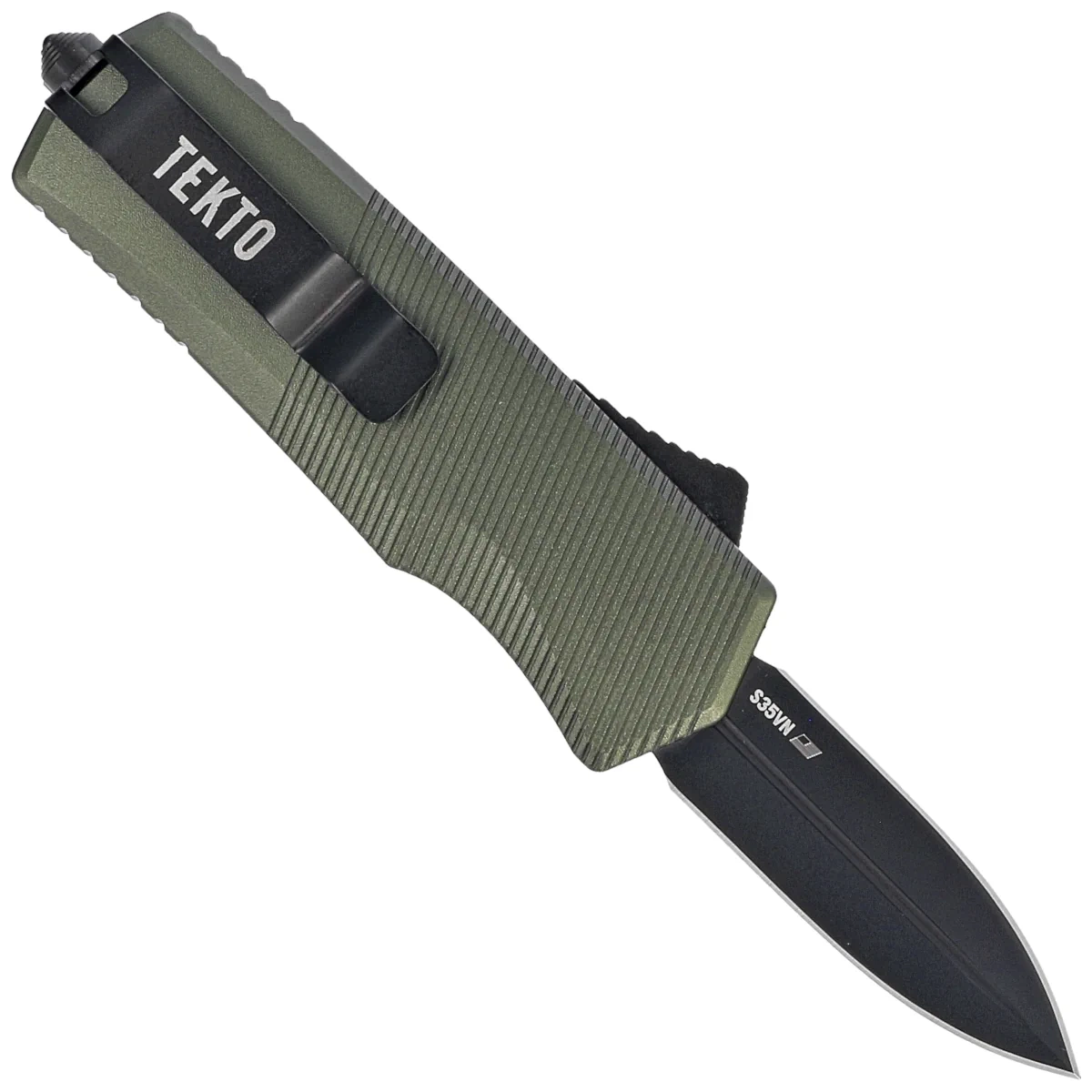 Tekto A5 Spry Mini D/E OD Green Aluminum OTF Knife, Black CPM S35VN
