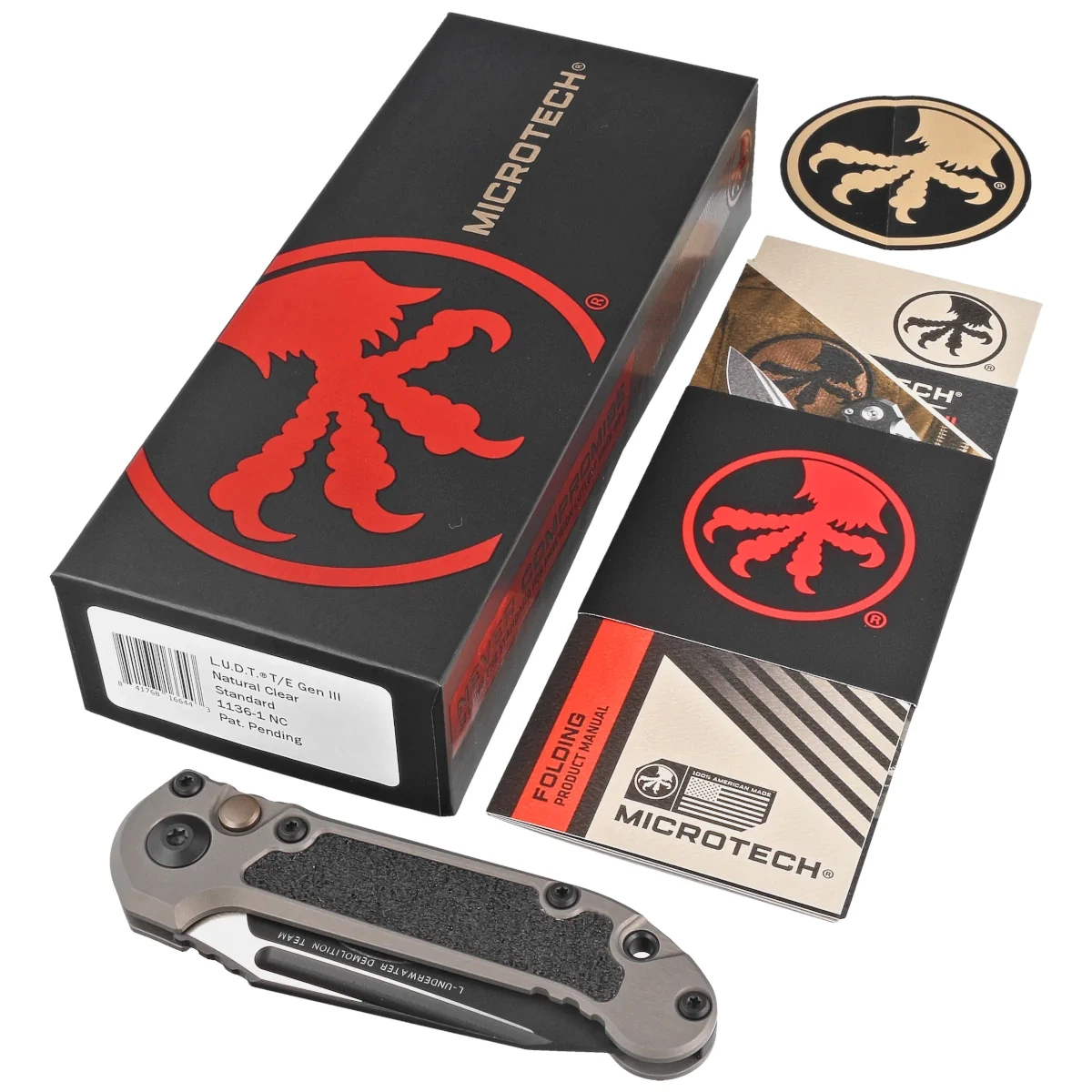 Microtech LUDT Gen III T/E Automatic Knife Natural Clear Aluminum, Black M390MK by Tony Marfione (1136-1NC)