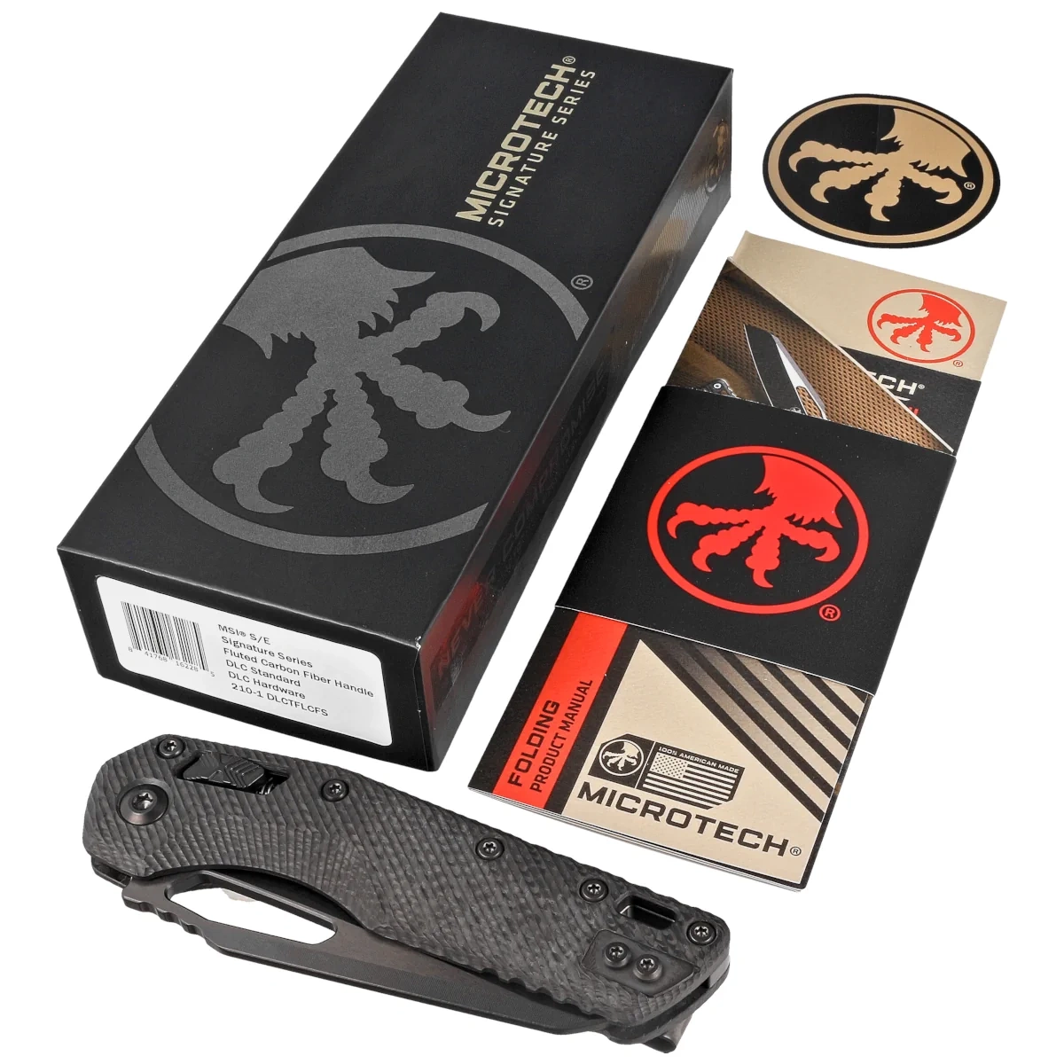 • MSI S/E Signature Fluted Carbon Fiber, Shadow DLC strong folding knife with intuitive RAM-Lock. Superior M390MK blade steel, the result of collaboration between Microtech and Bohler engineers. Ergonomic Carbon Fiber Handle. Designed by Anthony Marfione!