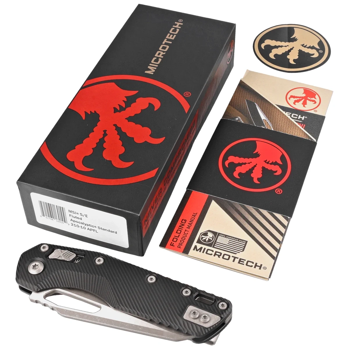 • MSI S/E Fluted Black Aluminum, Apocalyptic strong folding knife with intuitive RAM-Lock. Superior M390MK blade steel, the result of collaboration between Microtech and Bohler engineers. Ergonomic aluminum handle. Designed by Anthony Marfione of Microtech!