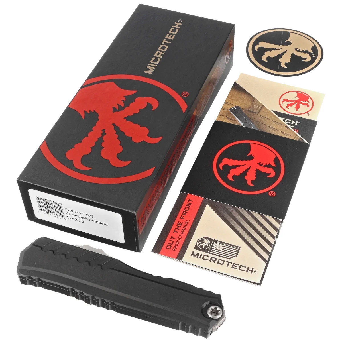 Microtech Cypher II D/E OTF Knife Black Aluminum, Stonewashed M390MK by Deryk Munroe and Tony Marfione (1242-10)