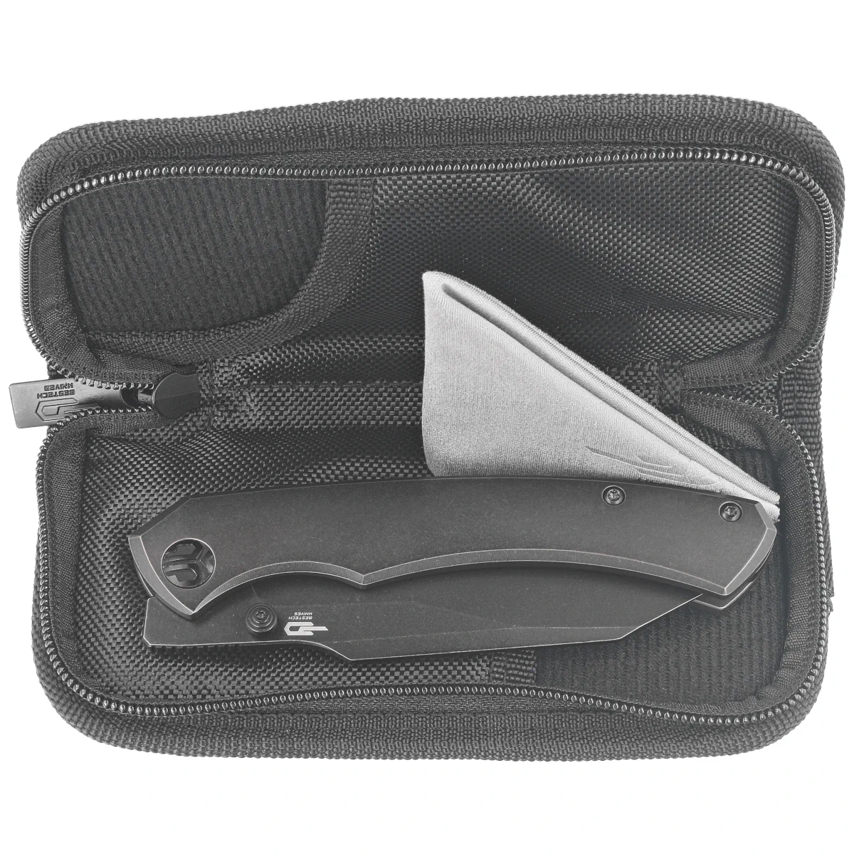 Case - the knife is packed in a zippered nylon soft pouch with the brand's logo for safe carrying and storage of the folder.