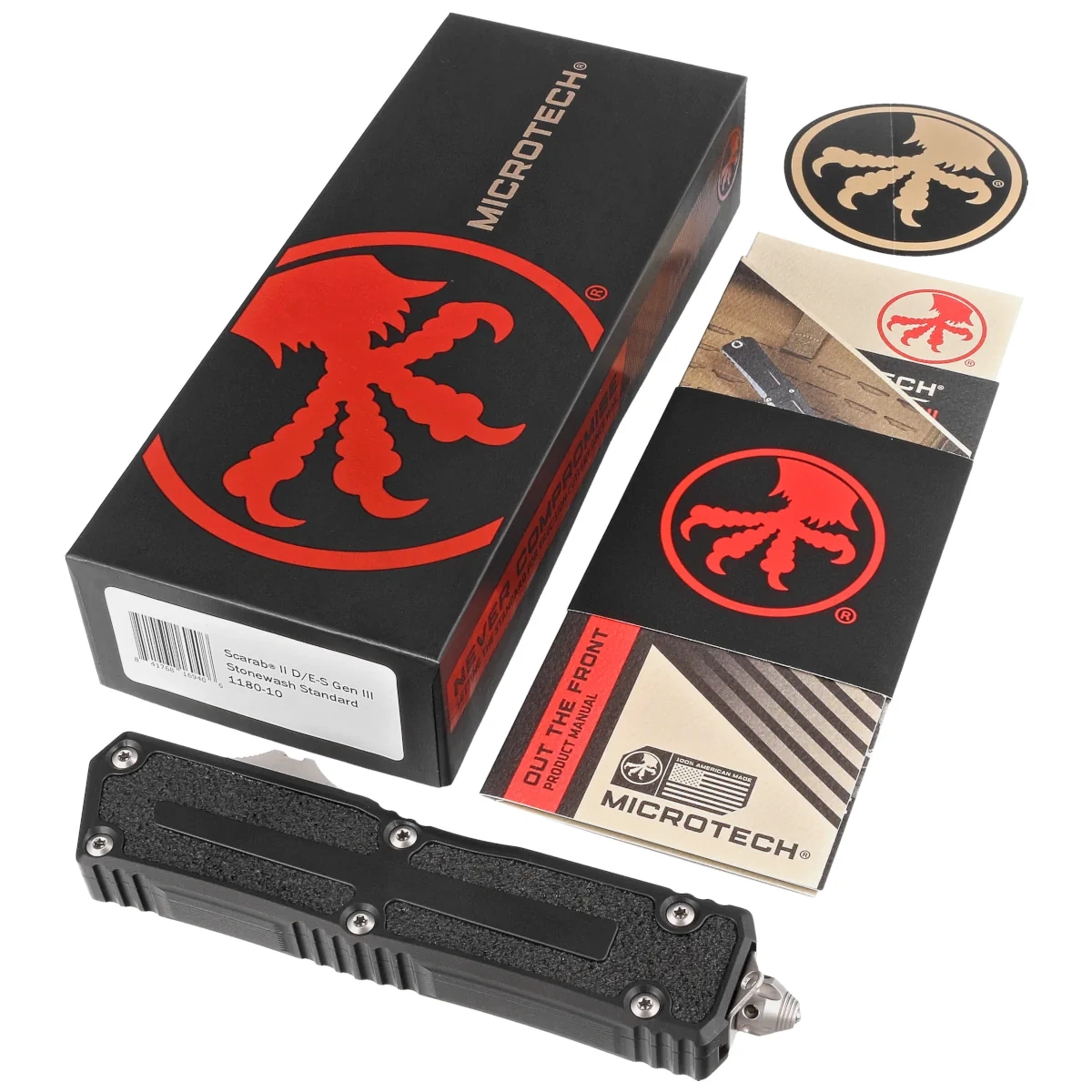 Microtech Scarab II Gen III D/E-S OTF Knife Black Aluminum, Stonewashed M390MK by Tony Marfione (1180-10)