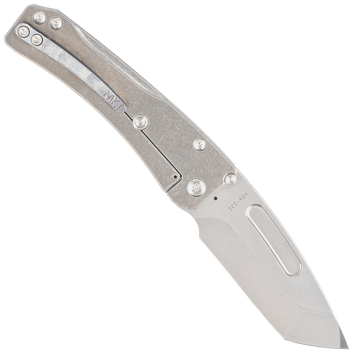 • Slim Midi Marauder Tanto Tumbled Titanium, Std HW, Brsh/Flm Tsunami Clip, Tumbled from MKT offers the robust construction of the larger Marauder-H model but with a thinner blade and handlefor easier everyday carry. When unfolded, it boasts a length 200 mm