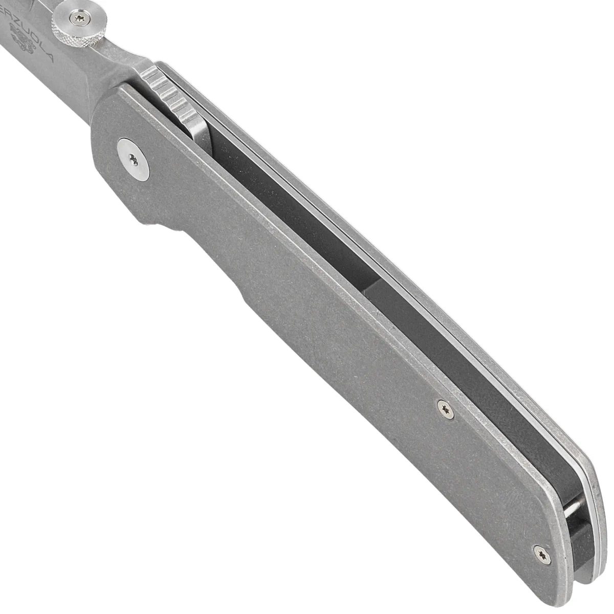 • Original Gangster Titanium, Stonewashed, factory edition of the most famous design of the legend of world knifemaking, Bob Terzuoli, ATCF knife. Simple lines, high utility, very good materials. Superb workmanship from the artisans of Maniago!