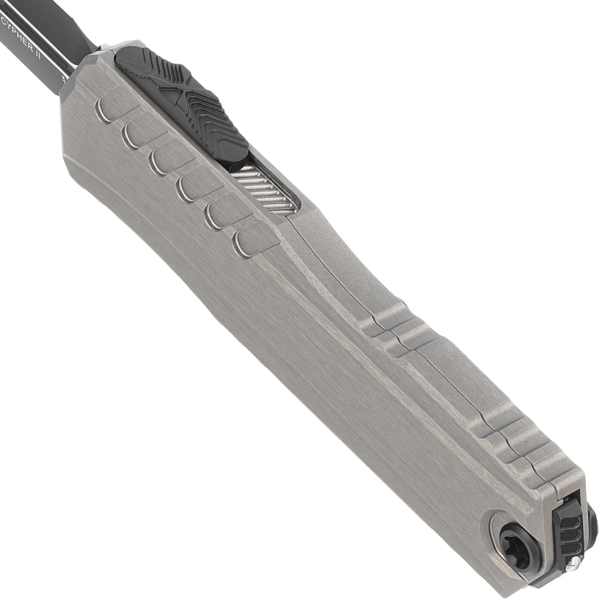 Microtech Cypher II D/E OTF Knife Natural Clear Aluminum, Black M390MK by Deryk Munroe and Tony Marfione (1242-1NC)