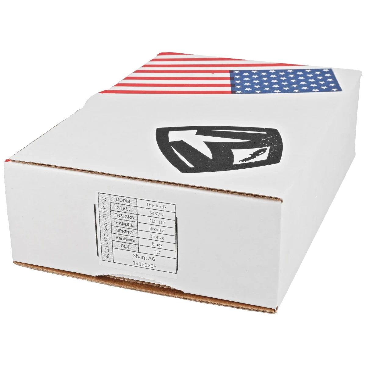 Product name: The Antik Drop Point, Bronze Titanium, Black HW, DLC Clip, Black DLC