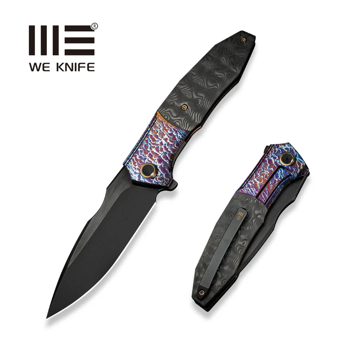 - Archaeozoic Flamed Titanium/Rose Carbon Fiber, Black Stonewashed/Brushed large EDC folding knife. Ergonomic titanium and carbon fiber handle for a comfortable grip, superior Böhler M390 steel blade. Opened with a quick flipper.