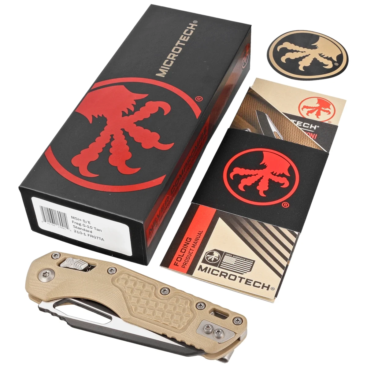 - MSI S/E Tan Frag G10, Black strong folding knife with intuitive RAM-Lok. Superior M390MK blade steel, the result of collaboration between Microtech and Bohler engineers. Ergonomic G10 handle. Designed by Anthony Marfione of Microtech!