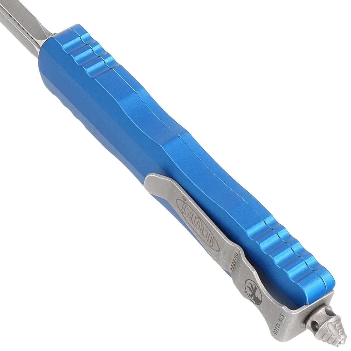 Microtech Dirac D/E Blue Aluminum OTF Knife, Apocalyptic M390 by Tony Marfione (225-10APBL)