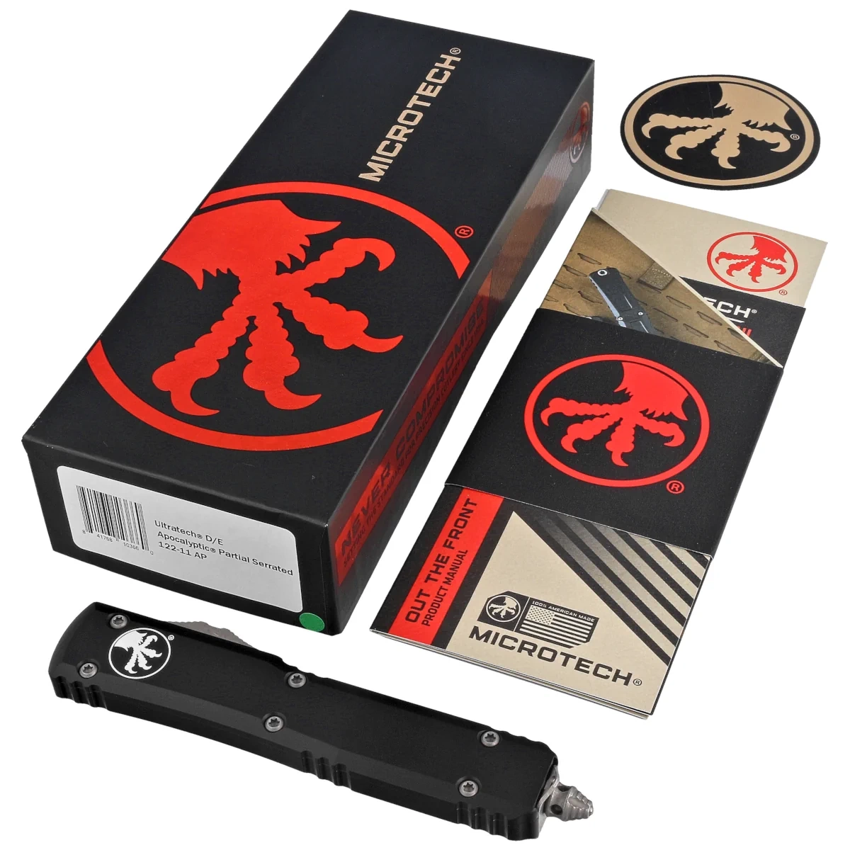 - Ultratech D/E Black Aluminum, Apocalyptic is a full-size OTF automatic knife from Ultratech. Operating in D/A mode, Blade made of Böhler M390 steel, precision machined aluminum Handle. Designed by Tony Marfione owner of Microtech Knives