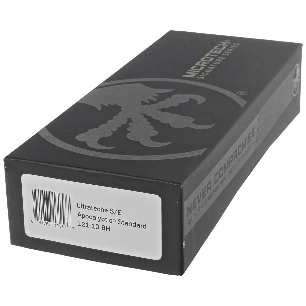 Ultratech OTF Line - Microtech 's flagship model of the OTF line, which set the standard for all Out The Front knives. Ultratech 's proprietary trigger spring design, which remains in the “resting” position at all times, except when used. This prevents the spring from fatigue, reducing wear and tear on the internal trigger mechanisms which ensures that the knife will always function effectively. The light weight, the ability to open and close with one hand, the slim shape of the Handle and the sharp blade make it a one-of-a-kind knife, available only from Microtech.