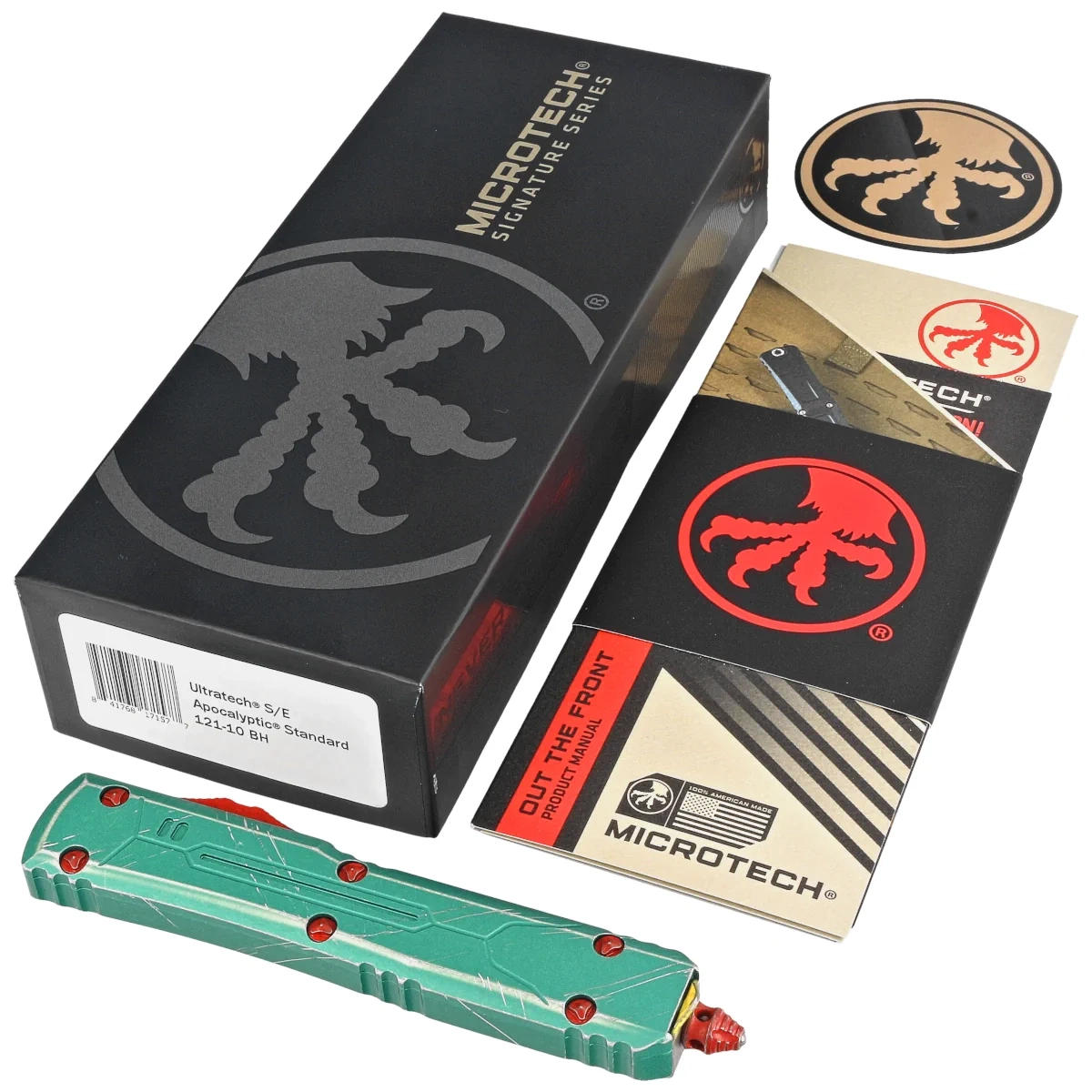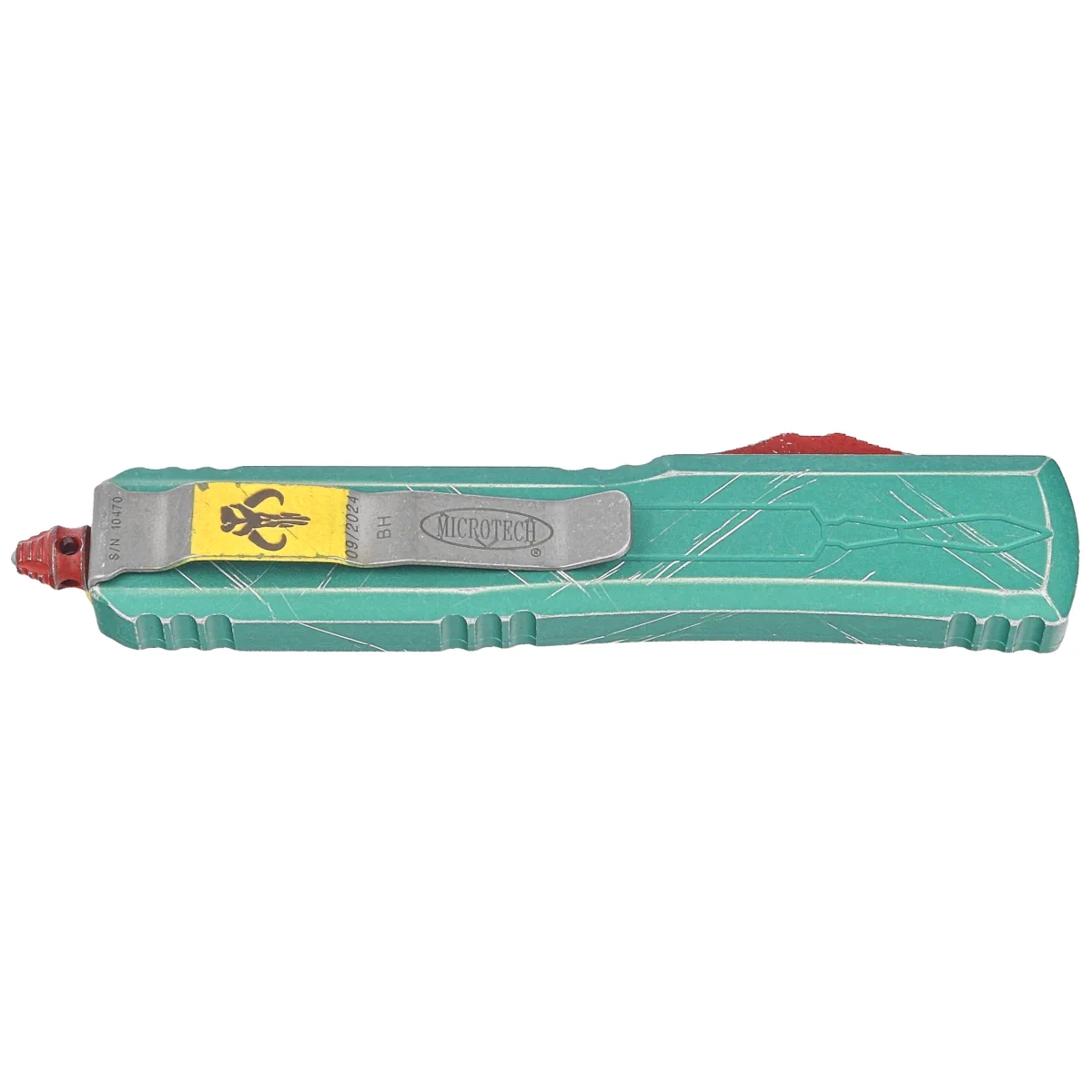Microtech Ultratech S/E Bounty Hunter Signature OTF Knife Distressed Green Aluminum, Apocalyptic M390 by Tony Marfione (121-10BH)