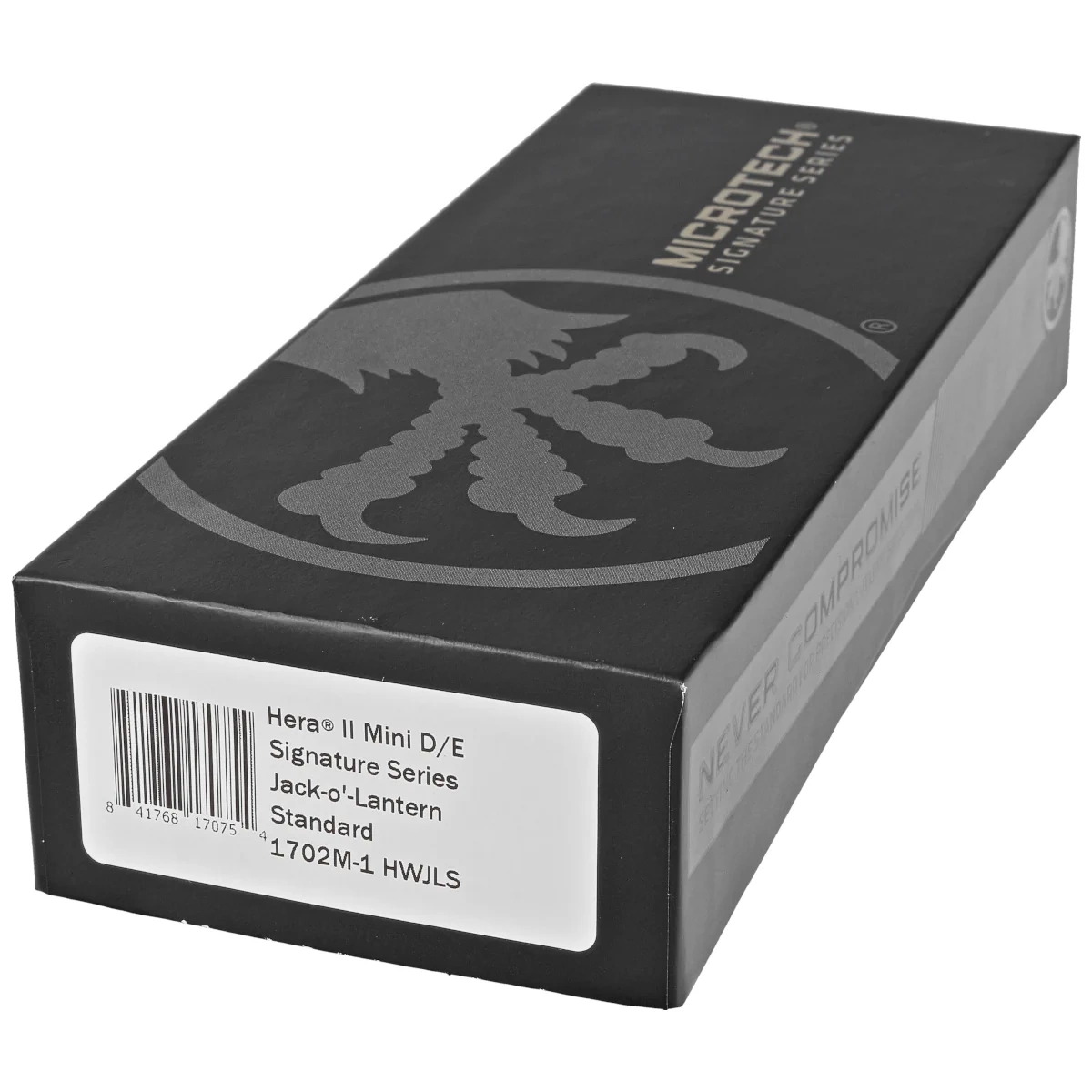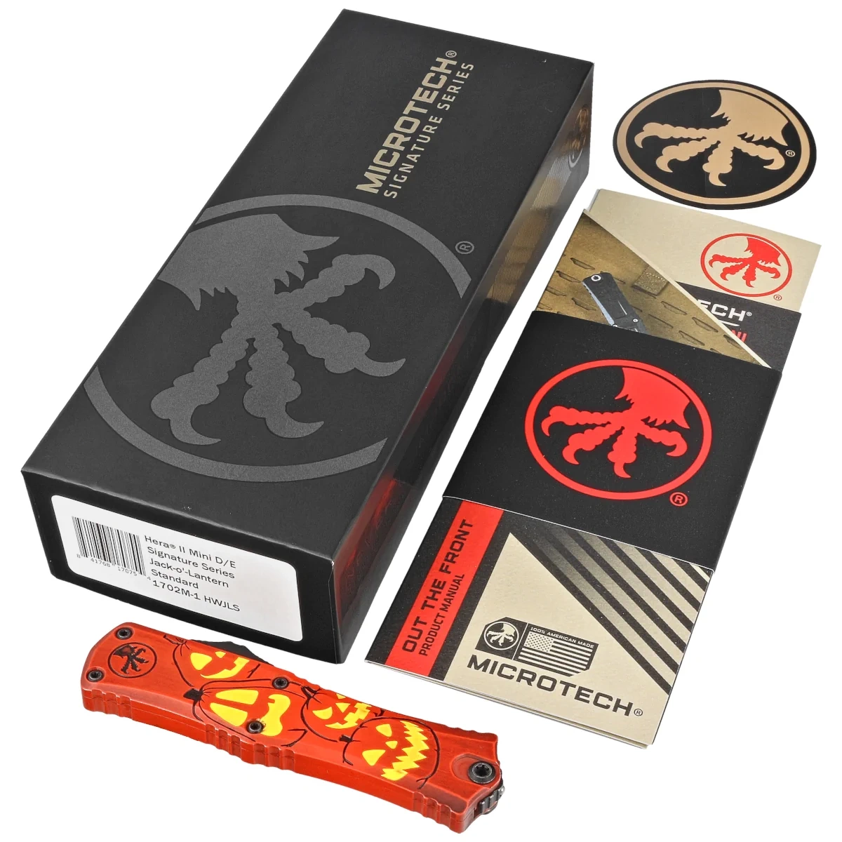 Microtech Hera II Mini D/E Signature Halloween Jack-o'-Lantern Aluminum, Satin M390MK OTF Knife by Tony and Sean Marfione (1702M-1HWJLS)