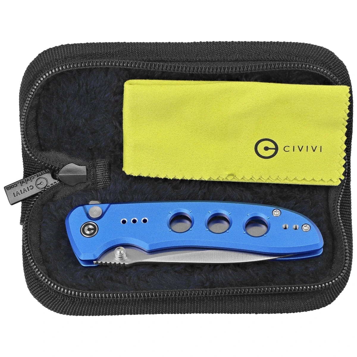 - Hyperpulse Blue Aluminum, Satin, a lightweight folding knife from Civivi. Blade made of Sandvik 14C28N stainless steel, ergonomic aluminum handle, intuitive button lock. The perfect tool for everyday carry!