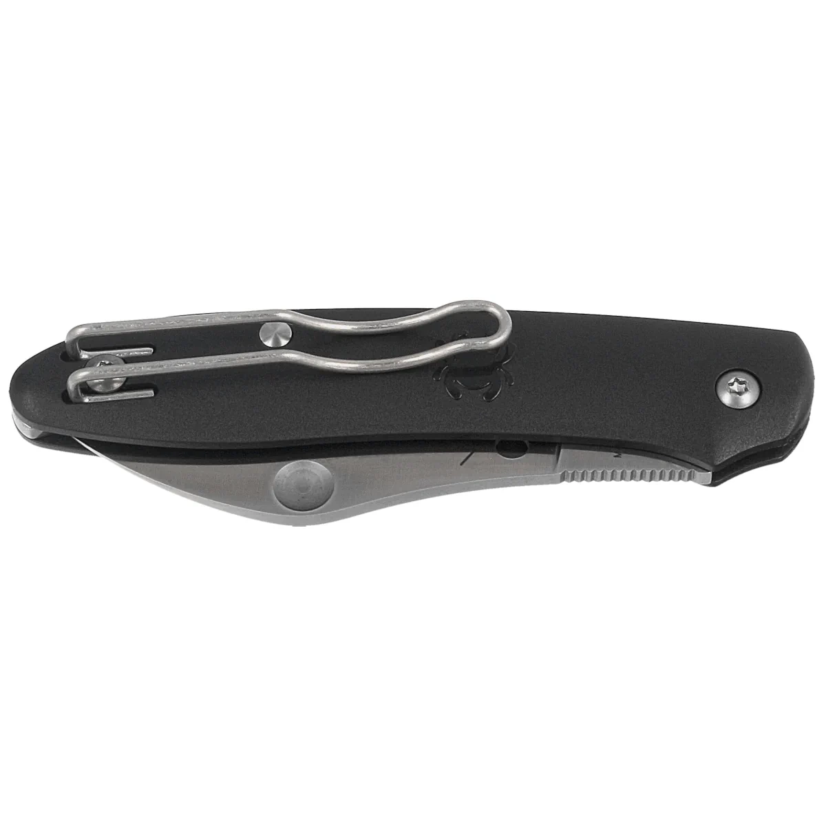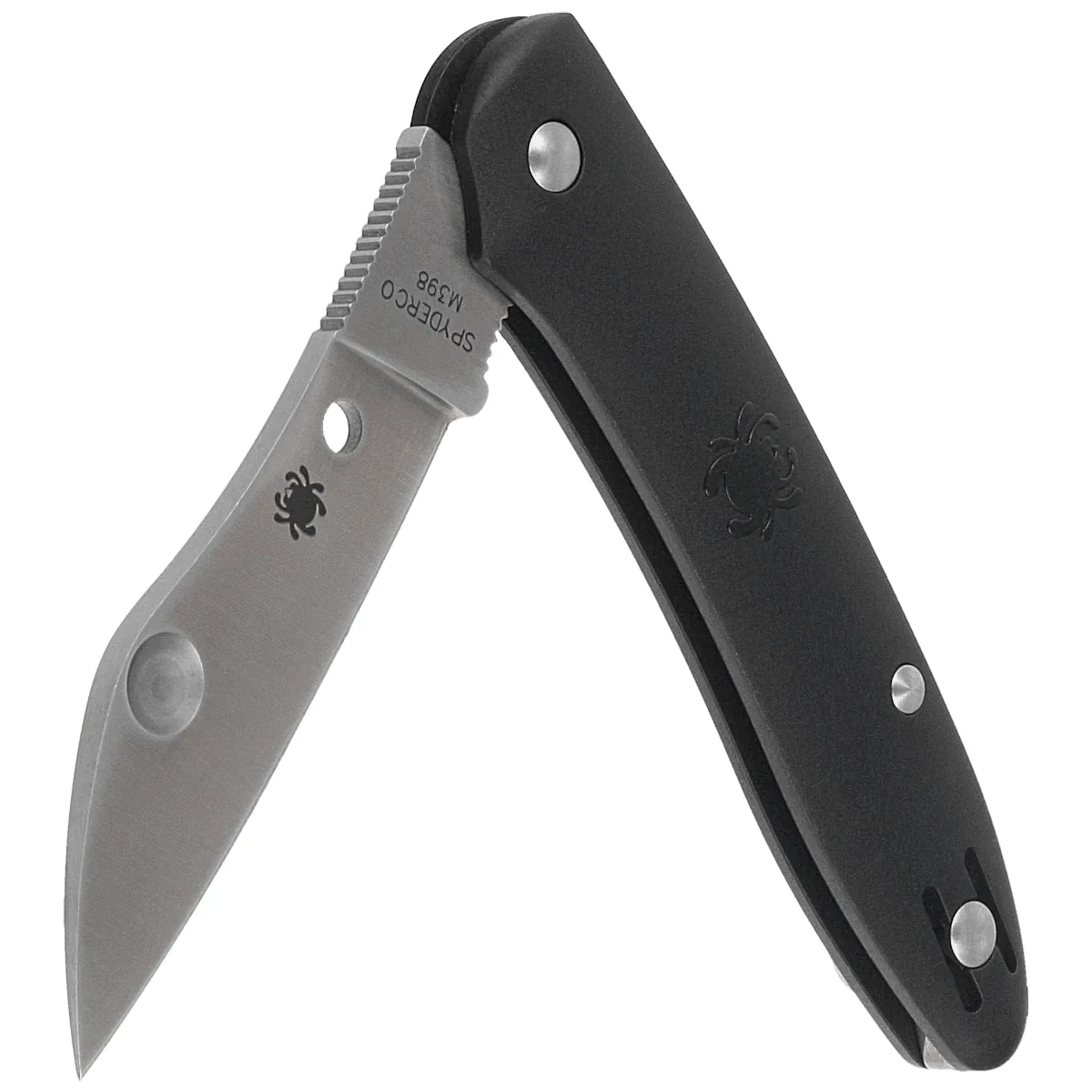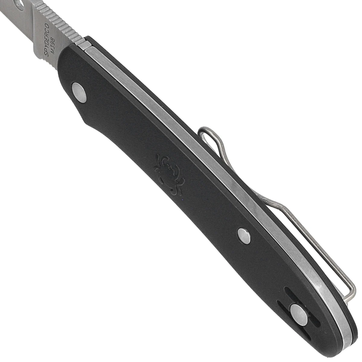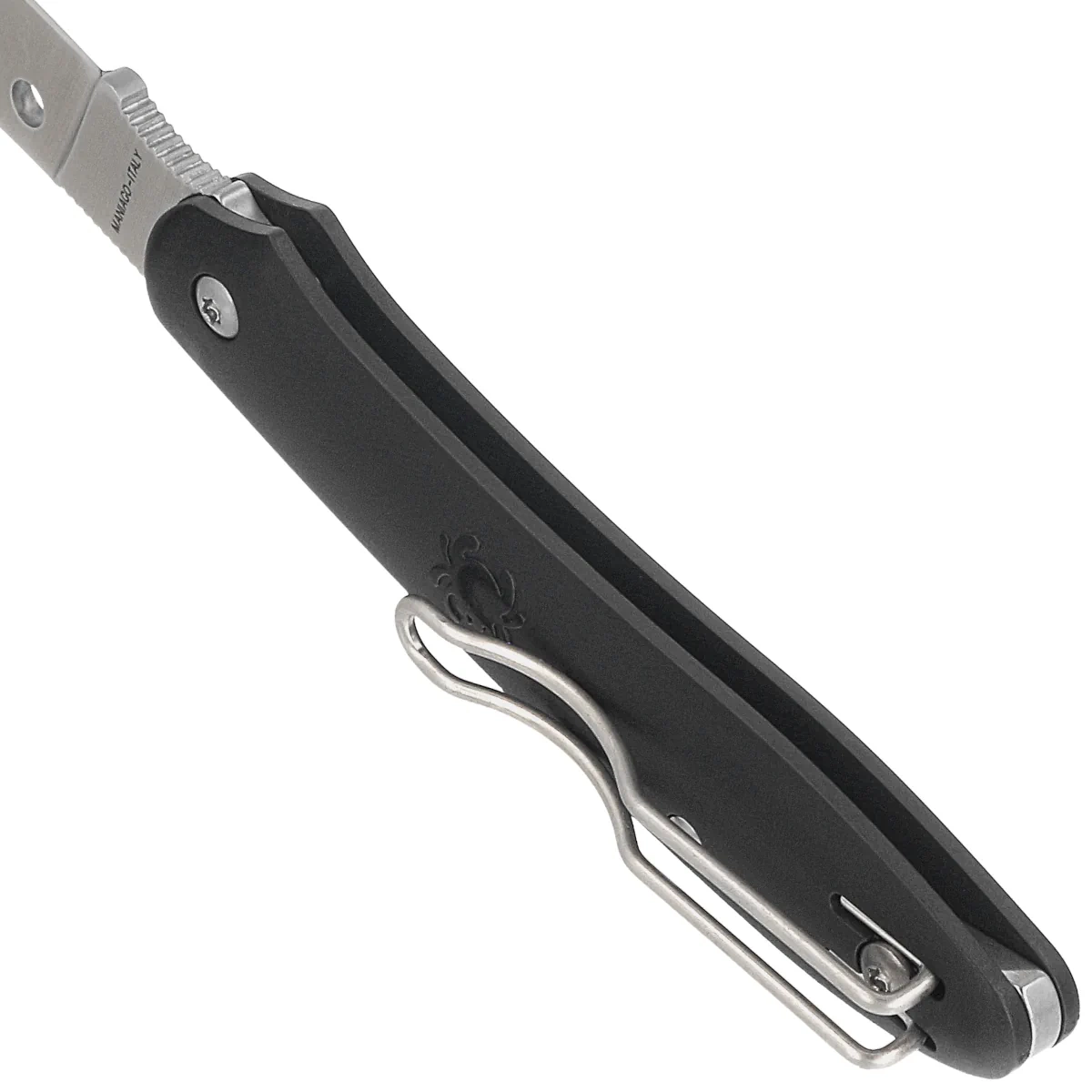 Roadie XL Black FRN, Satin design by Sal Glesser, founder of Spyderco. Classic pen knife made of excellent Böhler M398 steel and FRN composite handle. Ultralight, easy to carry, it will easily fit into any luggage or pocket. Due to its notch joint design and two-handed opening, allowed in many countries with restrictions on carrying knives on your person.