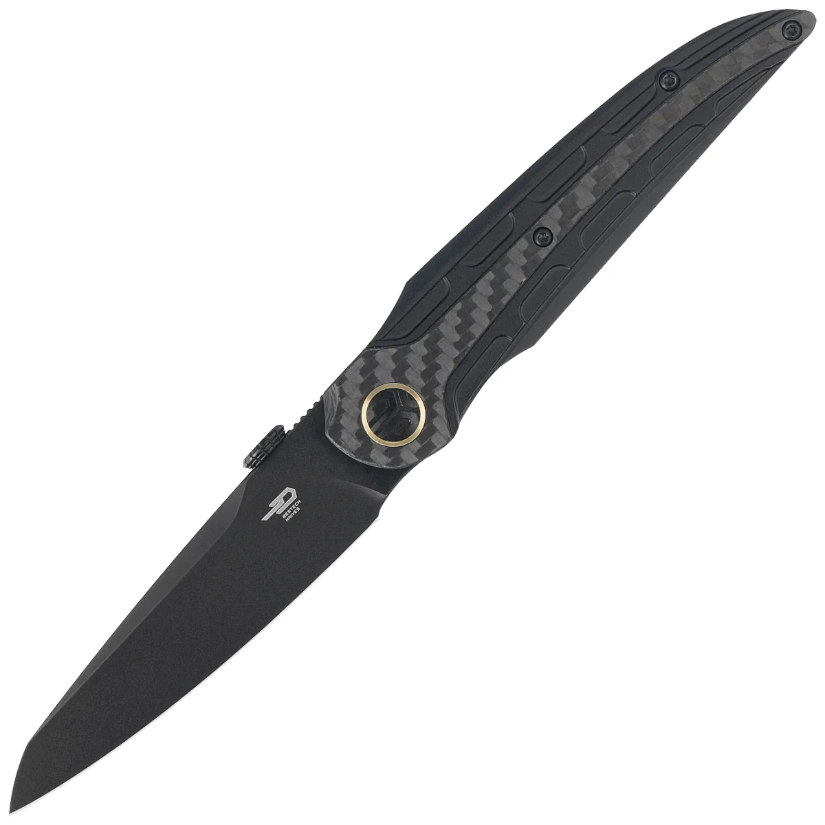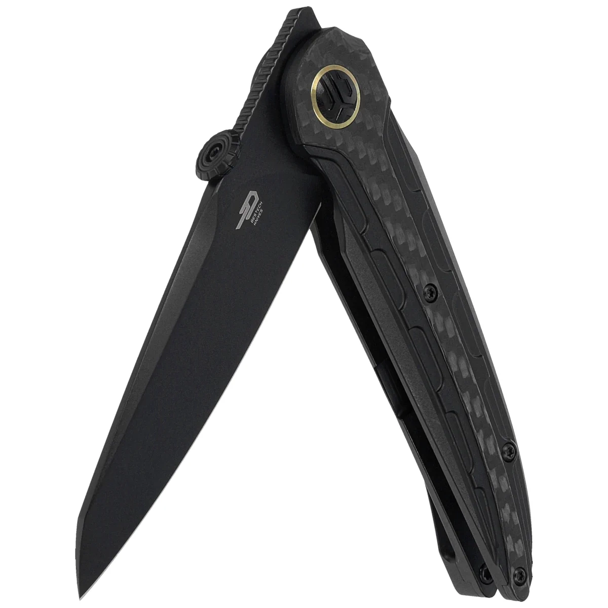 • Prydwen Black Titanium/Carbon Fiber, Black PVD large and powerful EDC folder. The result of a collaboration between Polish designer Grzegorz “Kombou” Grabarski and Bestech Knives. Artful titanium Handle, excellent blade steel!
