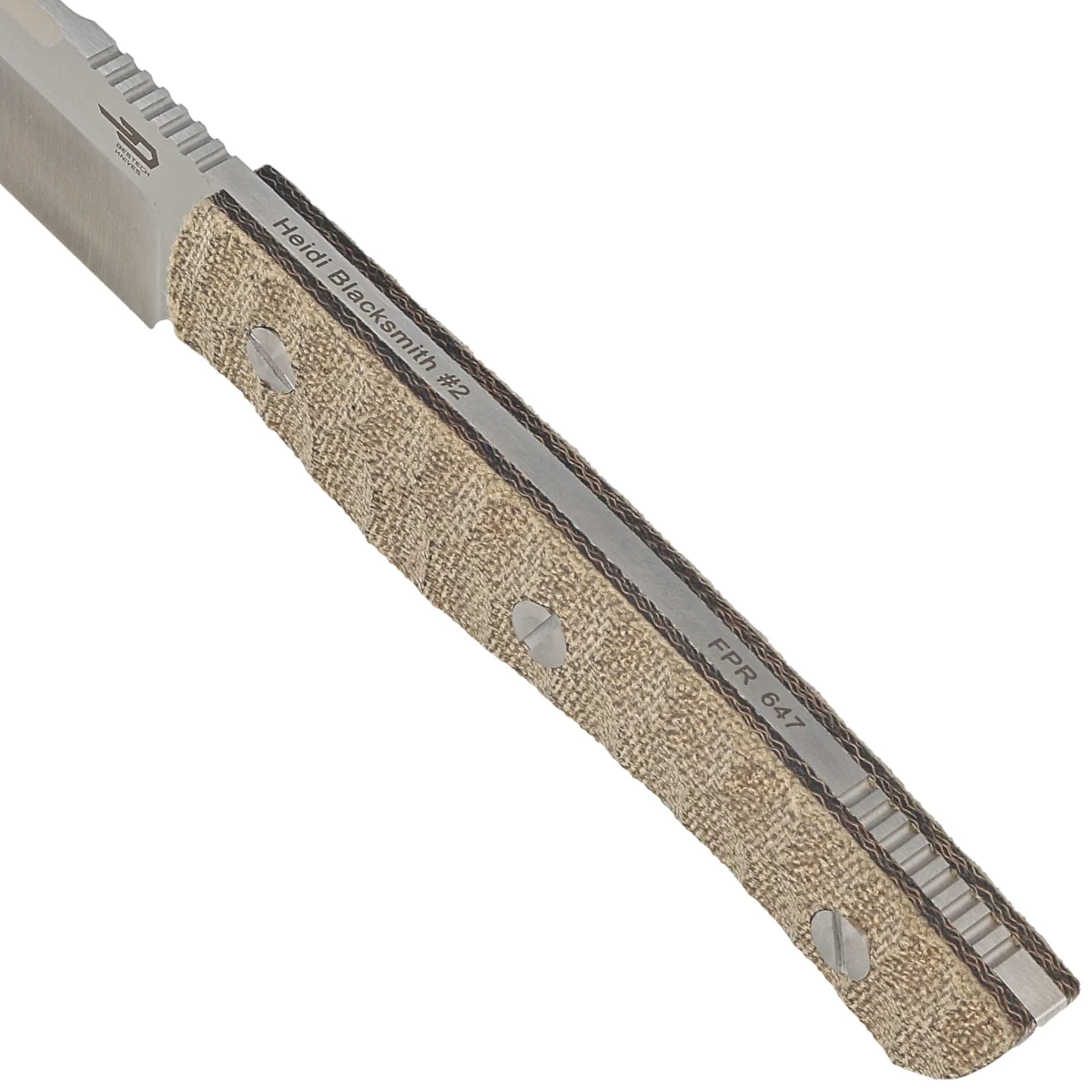 • Heidi Blacksmith 2 Green Canavas Micarta, Satin, fixed blade field knife. Full-tang construction in S35VN stainless steel, mixed grind, kydex sheath for vertical and horizontal attachment. A knife that will not let you down in times of need!