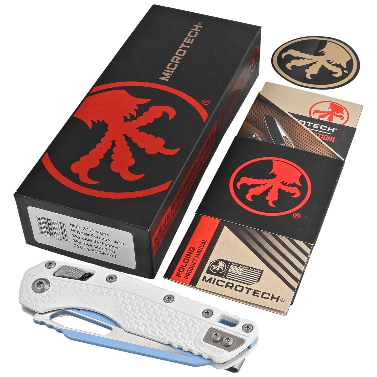 Microtech MSI S/E Ram-Lok White Tri-Grip Polymer, Sky Blue M390MK by Tony Marfione (210T-1PMCWH-Y7)
