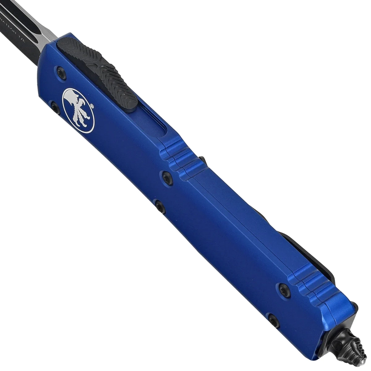 • Ultratech T/E Navy Blue Aluminum, Satin is a full-size OTF automatic knife from Ultratech. Operating in D/A mode, Blade made of Böhler M390 steel, precision machined aluminum Handle. Designed by Tony Marfione owner of Microtech Knives