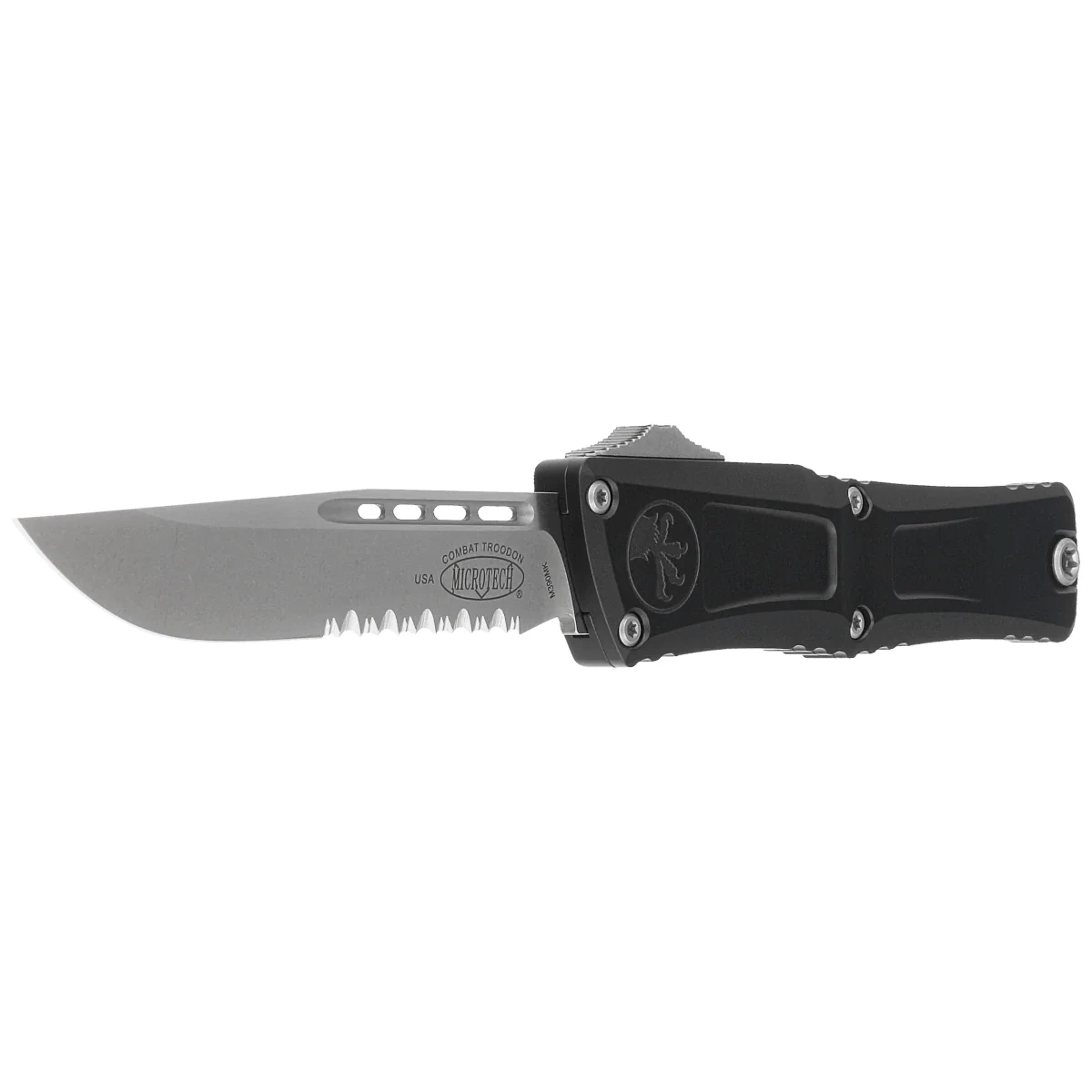 Combat Troodon OTF Line - Troodon means “wounding tooth” in Greek. Although the name was first given to a Raptor-like dinosaur, the name is equally appropriate for Microtech's large OTF knife, designed for all sorts of uses and close combat. The over-the-top,Double Action (D/A) automatic knife is a favorite OTF among law enforcement officers, US armed forces and emergency services personnel. Its rugged construction makes the Combat Troodon® suitable for heavy use, and the advantages of the Out The Front automatic also make it an excellent knife for everyday carry.