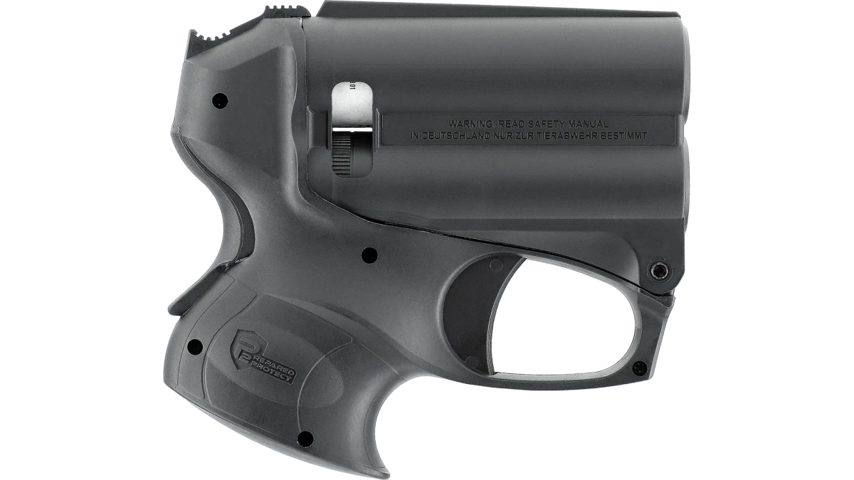 The P2P PGS II KIT is designed for maximum convenience and safety. Its contoured grip with an anti-slip texture ensures a secure hold, while the enlarged trigger guard allows for operation with winter gloves. Additionally, the UV dye in the spray enables attacker identification by authorities after an incident.