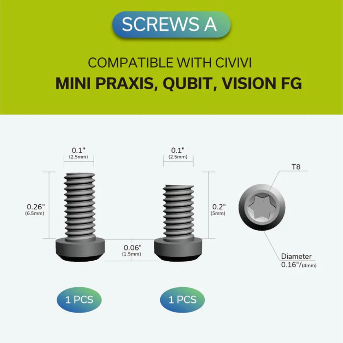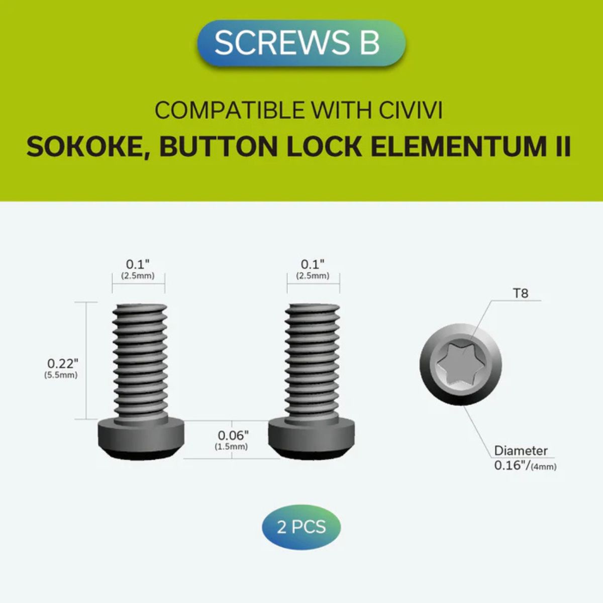 - Black titanium Civivi pocket clip with 2 pairs of black titanium Trox T8 screws for WE and Civivi knives. Two different screw sets (screws A and screws B) allow the clip to be mounted on various folder models with compatible hole spacing.