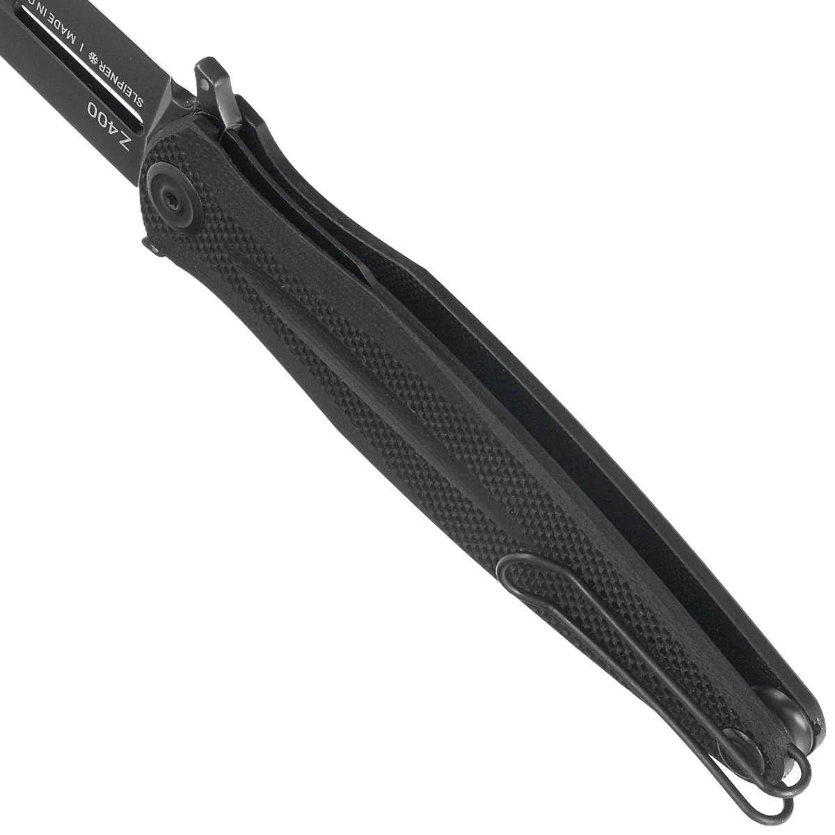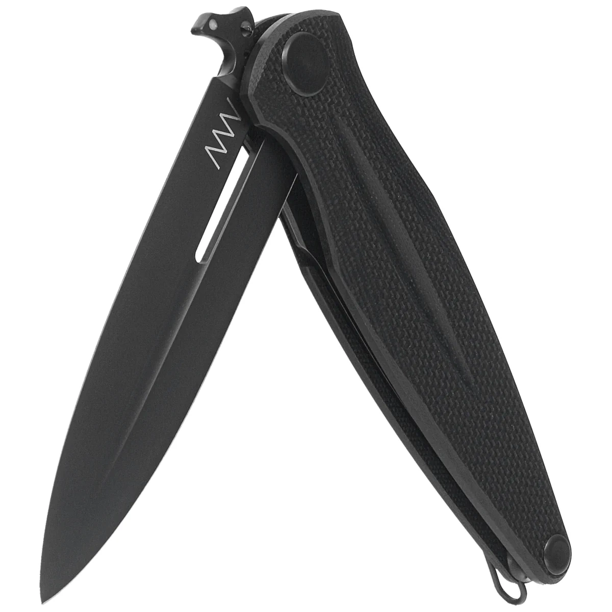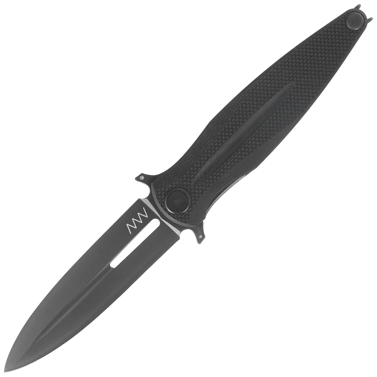 • Z400 BB Black G10, Black DLC tactical folder from Czech company ANV (Acta Non Verba) Knives. Blade dagger blade made of Sleipner steel, reinforced on both sides with grain to strengthen the construction. Handle made of G10 composite, double-sided clip.