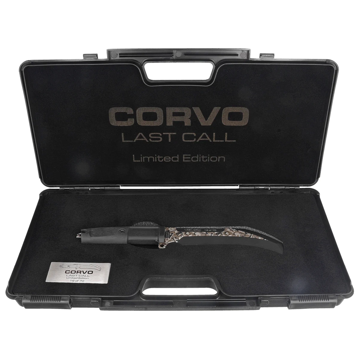 • Corvo Last Call LE No 016/70 Black Forprene, Black MIL-C/Geotech Camo, a limited to 70 pieces version of the knife used by Chilean Special Forces. Comfortable Forprene handle, Böhler N690 stainless steel blade.