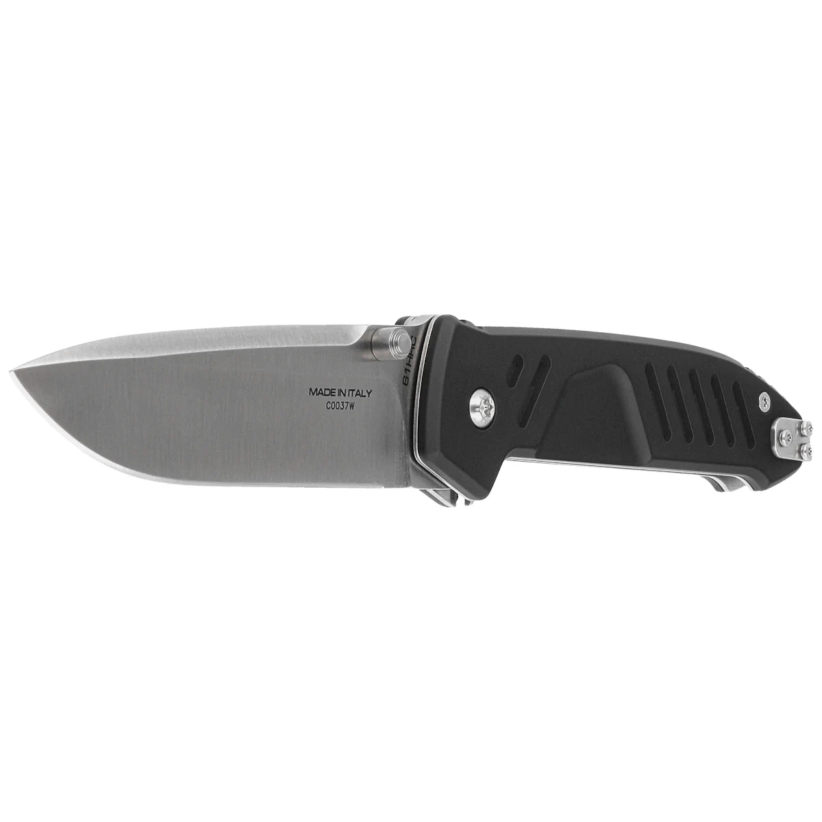 Blade - extremely sharp with a drop point profile and a clearly defined belly. Finished with an elegant satin finish. The blade has a flat grind which ensures durability, excellent cutting edge geometry and extreme cutting performance. Double blade locking system: a solid Liner-Lock blade locking mechanism combined with an additional “Hidden Lock” manual lock. A false blade is located on the spine to improve the knife's piercing properties. The knife is opened with a dual thumb stud.